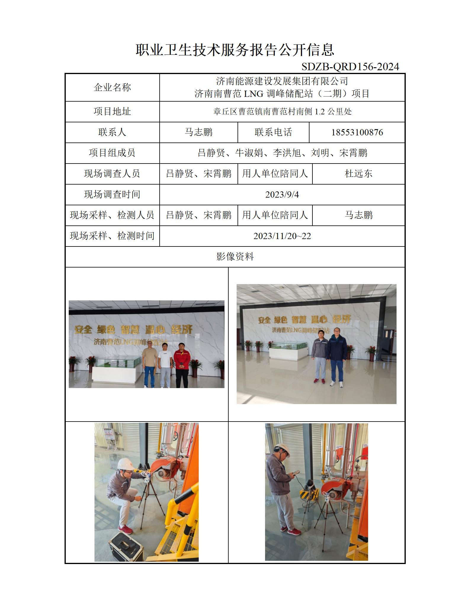 ZBZY23-KP-007济南能源建设发展集团有限公司济南南曹范LNG调峰储配站(二期)项目职业病危害控制效果评价公开信息