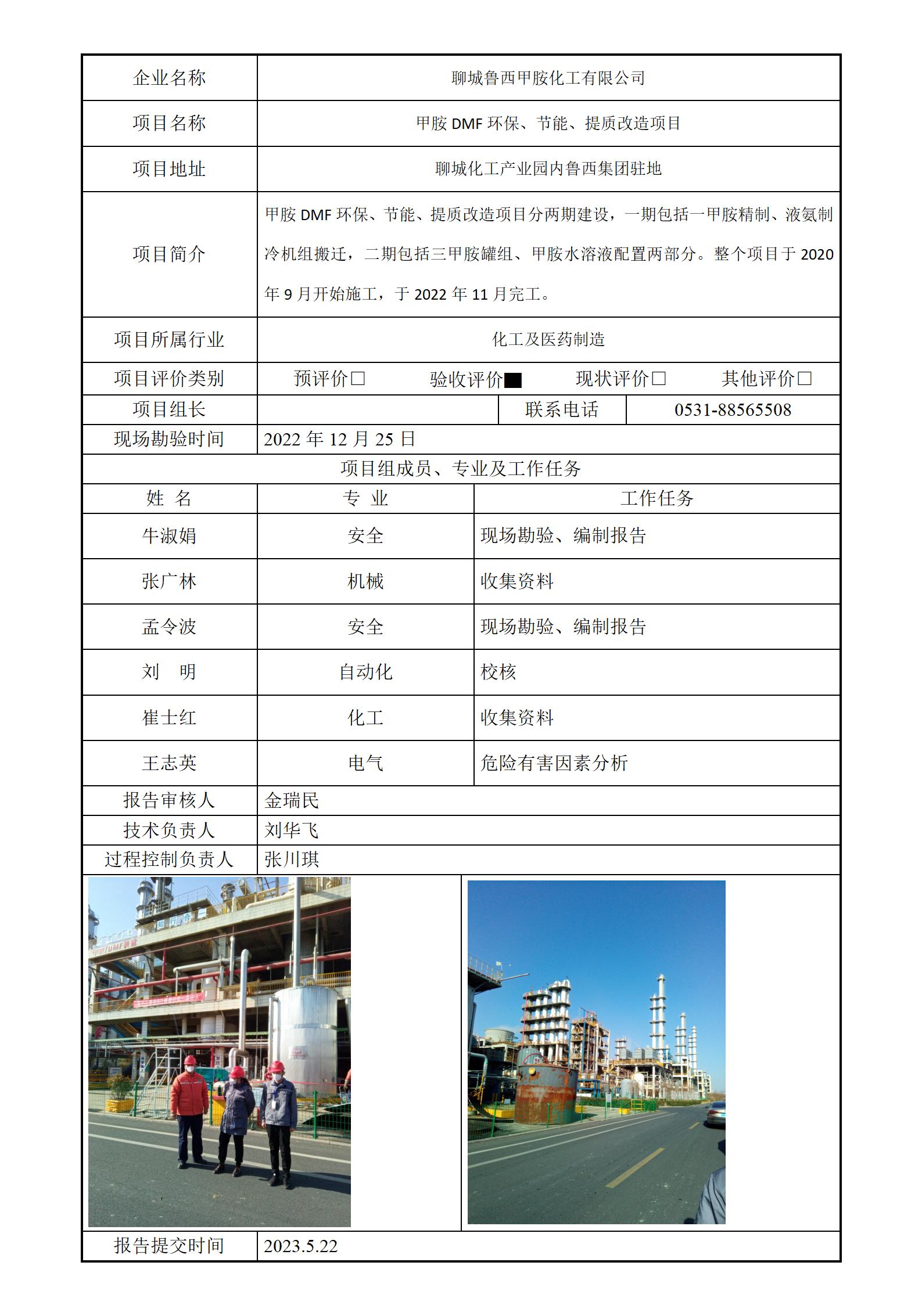 聊城鲁西甲胺化工有限公司安全评价报告信息公开