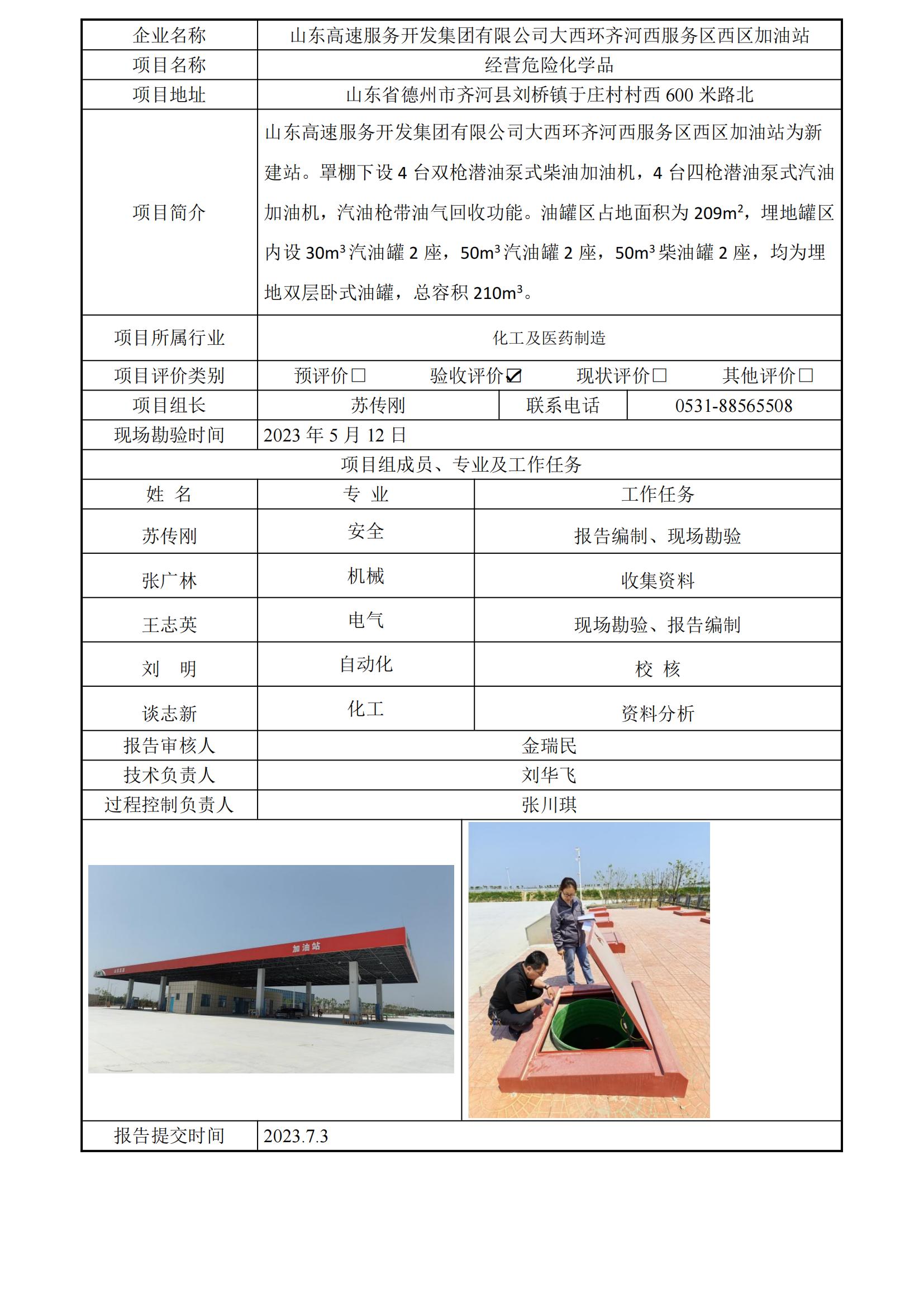 山东高速服务开发集团有限公司大西环齐河西服务区西区加油站安全评价报告信息公开