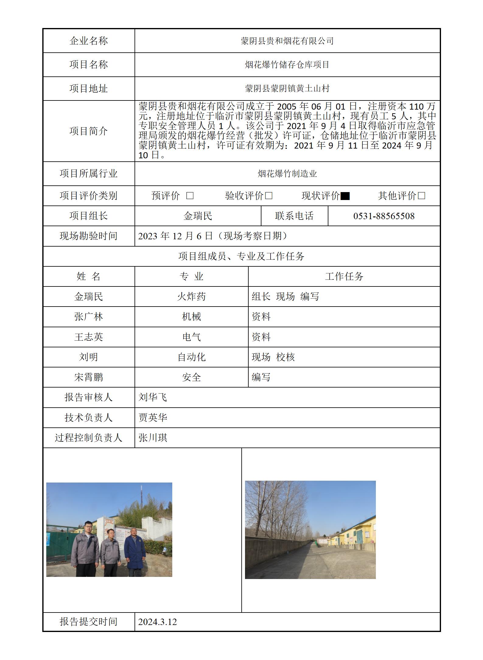 蒙阴县贵和烟花有限公司安全评价报告信息公开