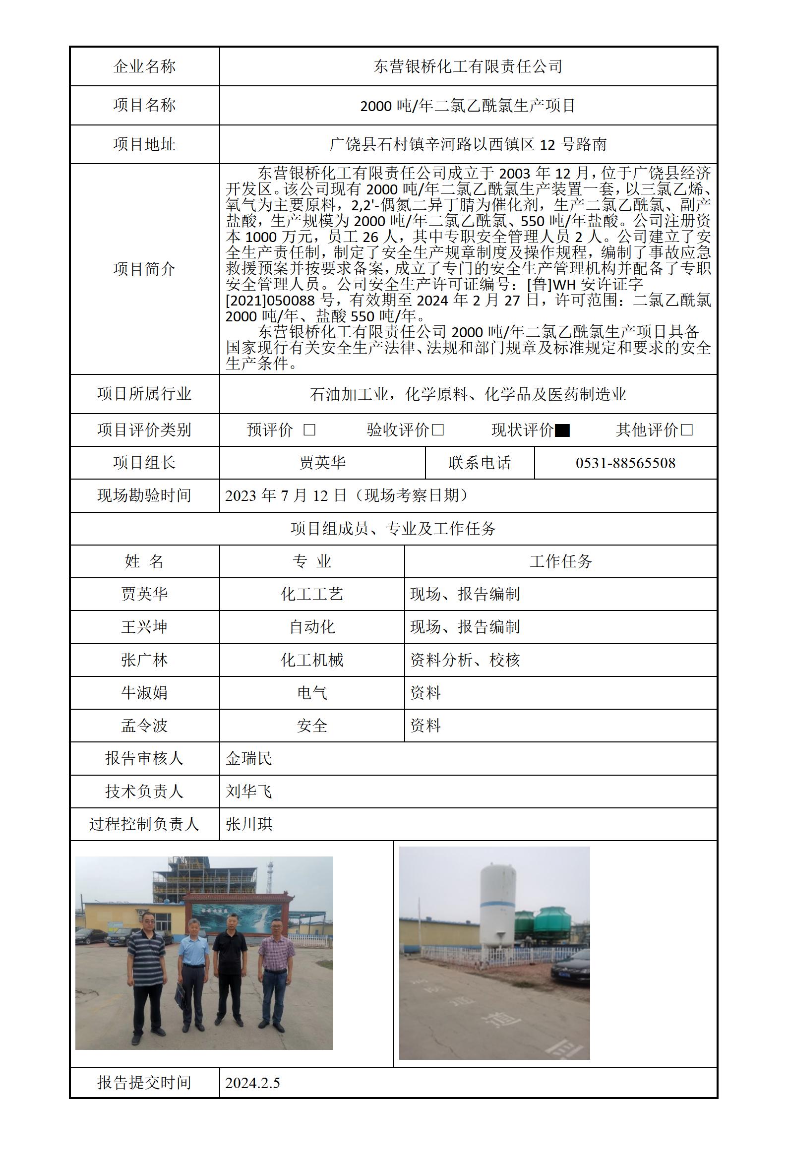 东营银桥化工有限责任公司安全评价报告信息公开