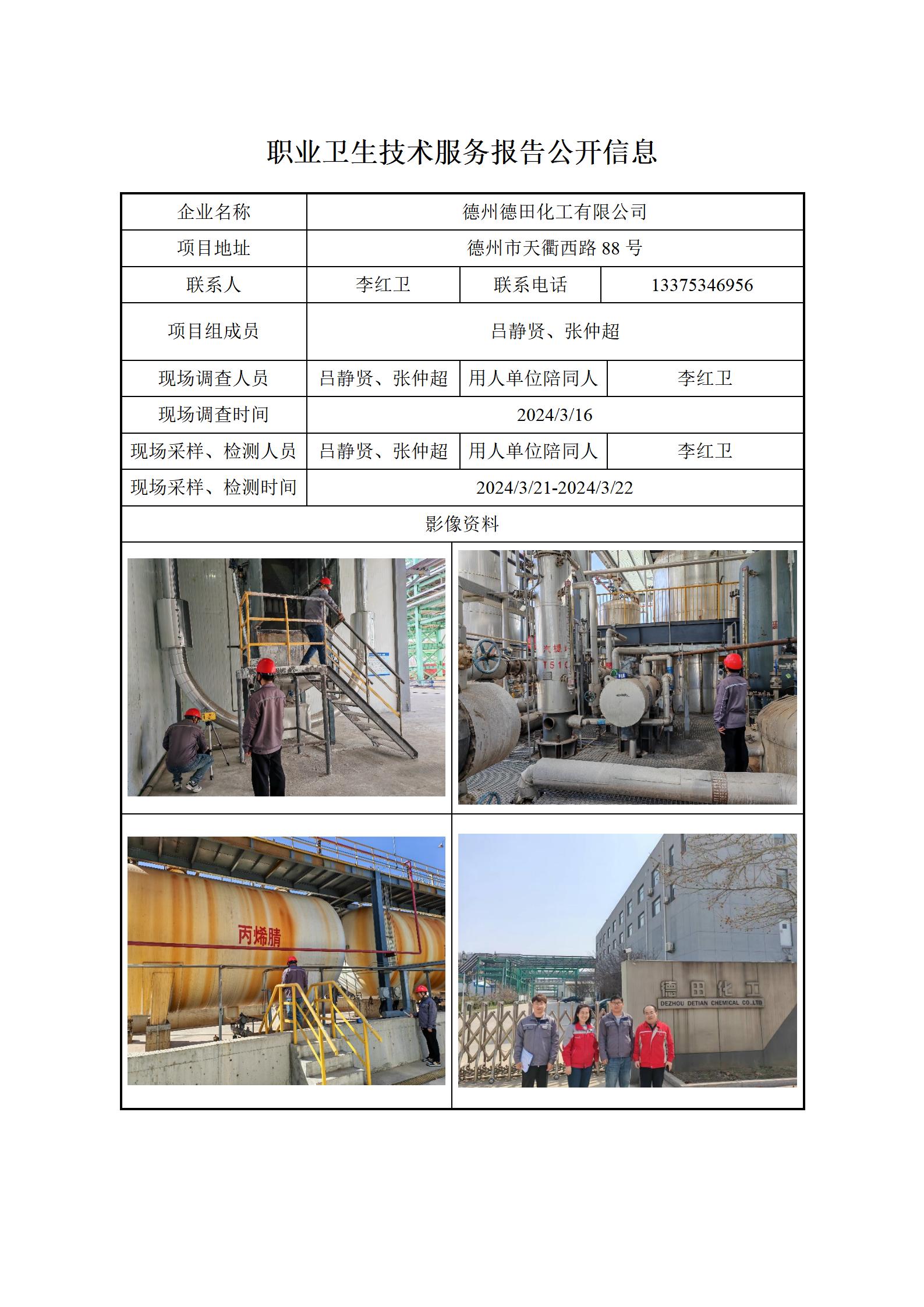ZBZY24-DQ-006德州德田化工有限公司定期检测 信息公开