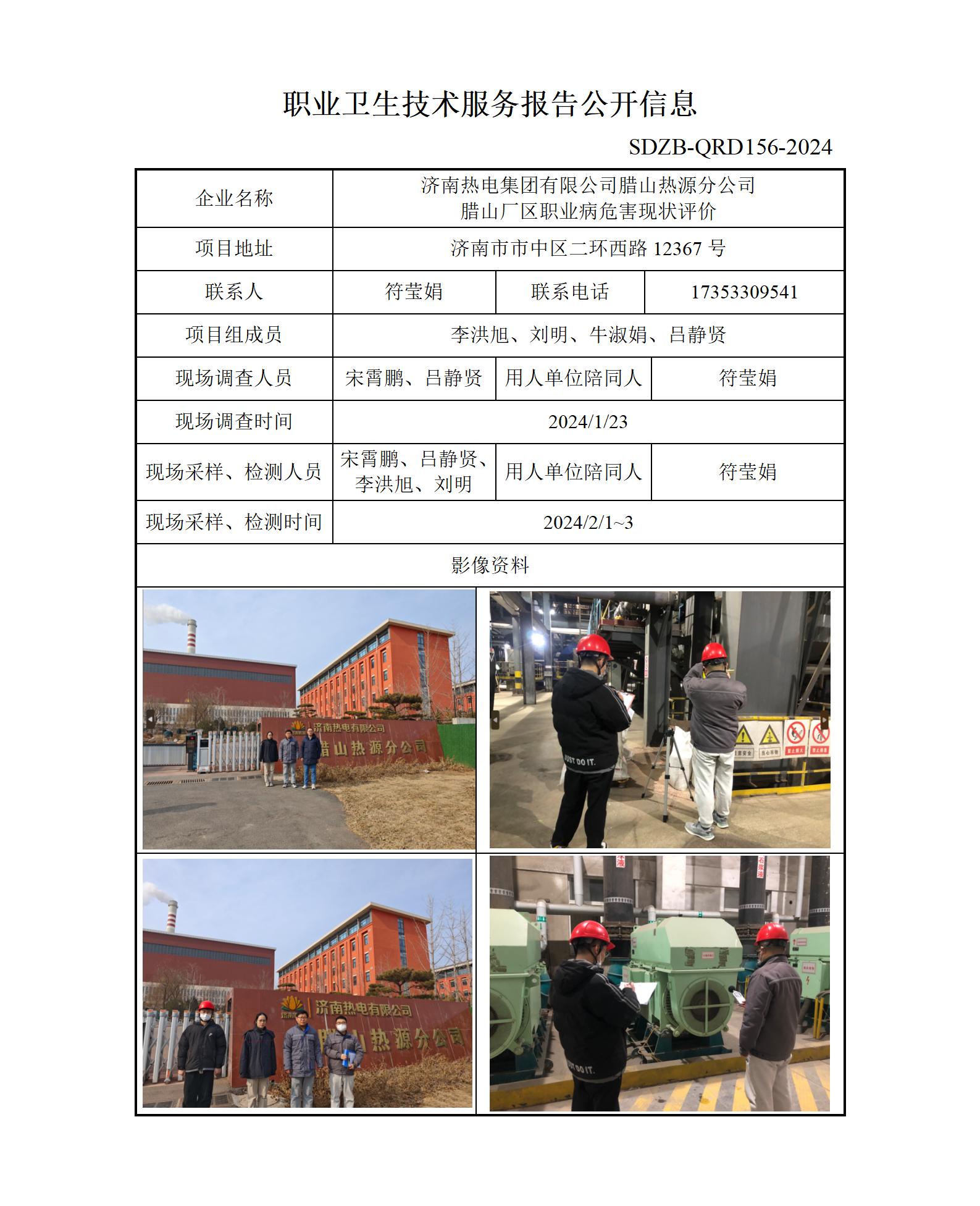 ZBZY24-XP-001济南热电集团有限公司腊山热源分公司职业病危害现状评价信息公开