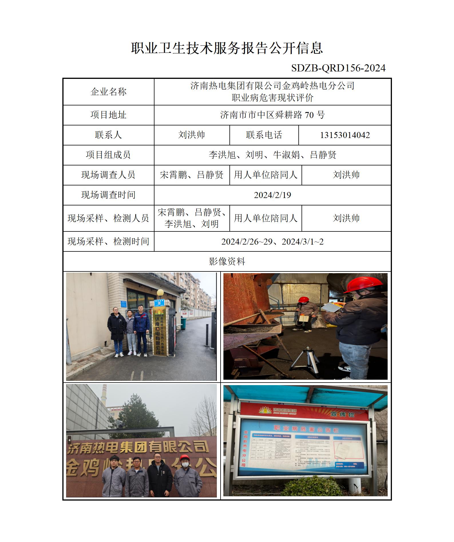 ZBZY24-XP-002济南热电集团有限公司金鸡岭热电分公司职业病危害现状评价信息公开
