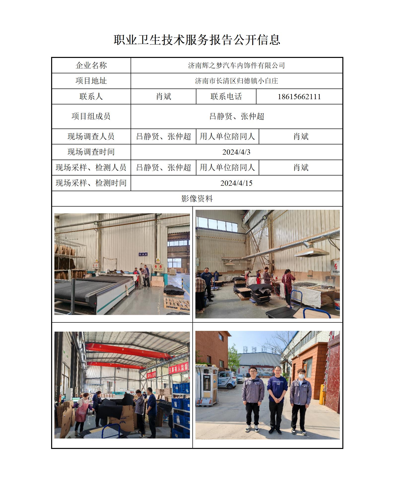 ZBZY24-DQ-014济南辉之梦汽车内饰件有限公司定期检测 信息公开