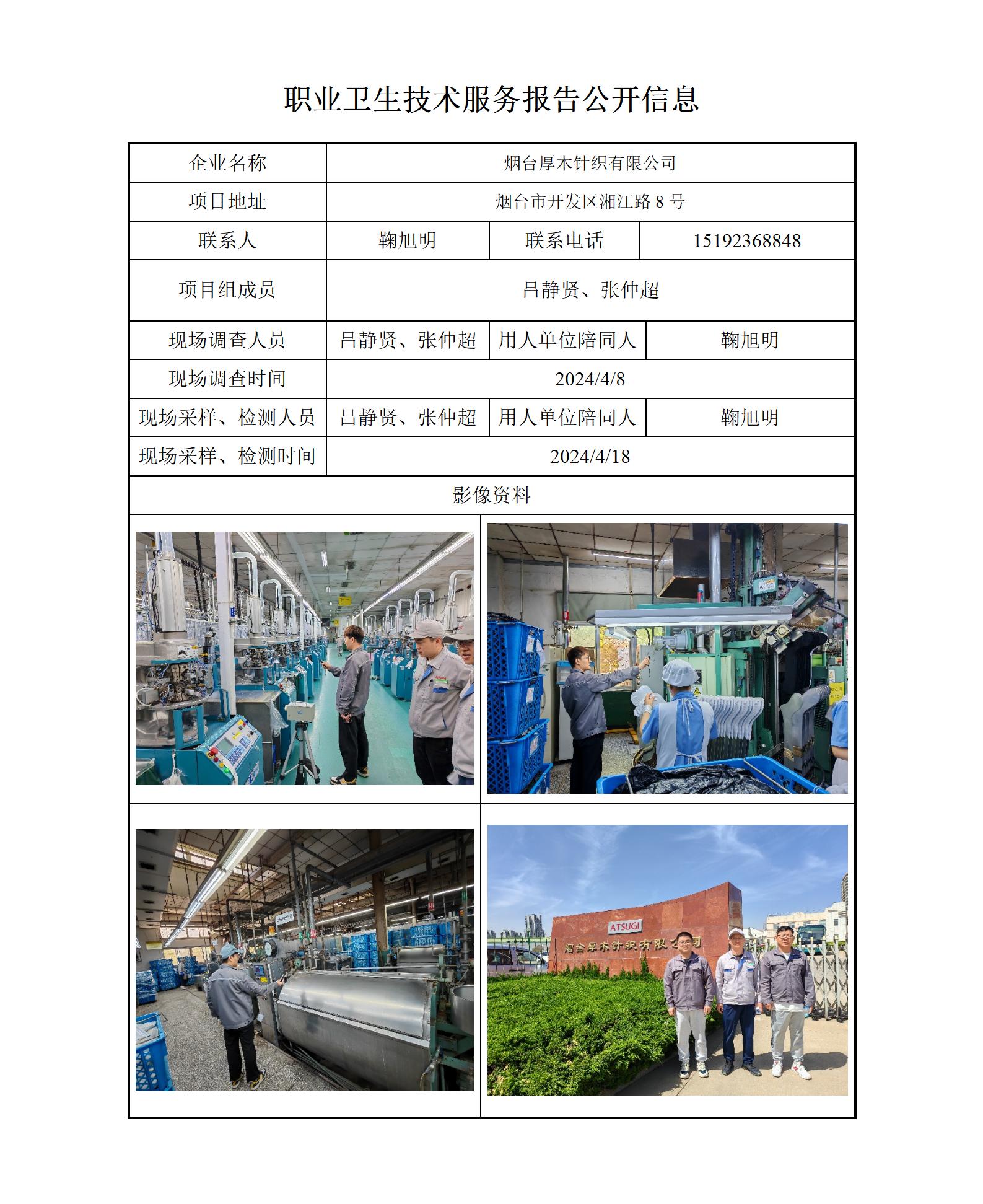 ZBZY24-DQ-015烟台厚木针织有限公司定期检测 信息公开