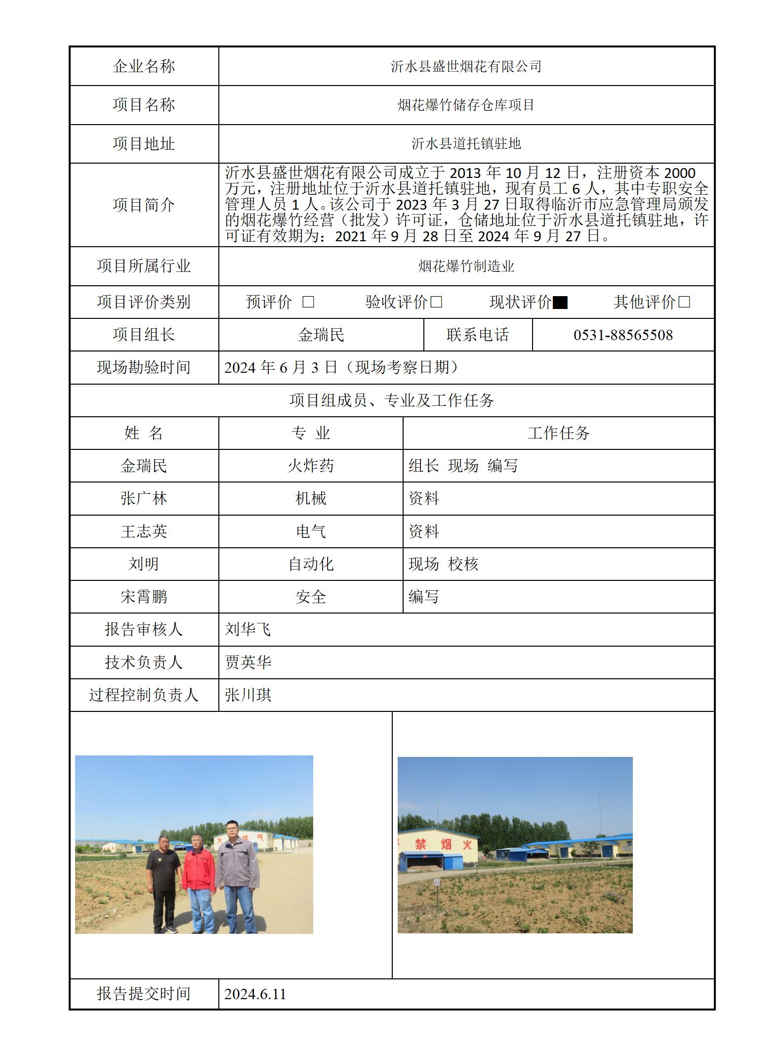 沂水县盛世烟花有限公司 安全评价报告信息公开