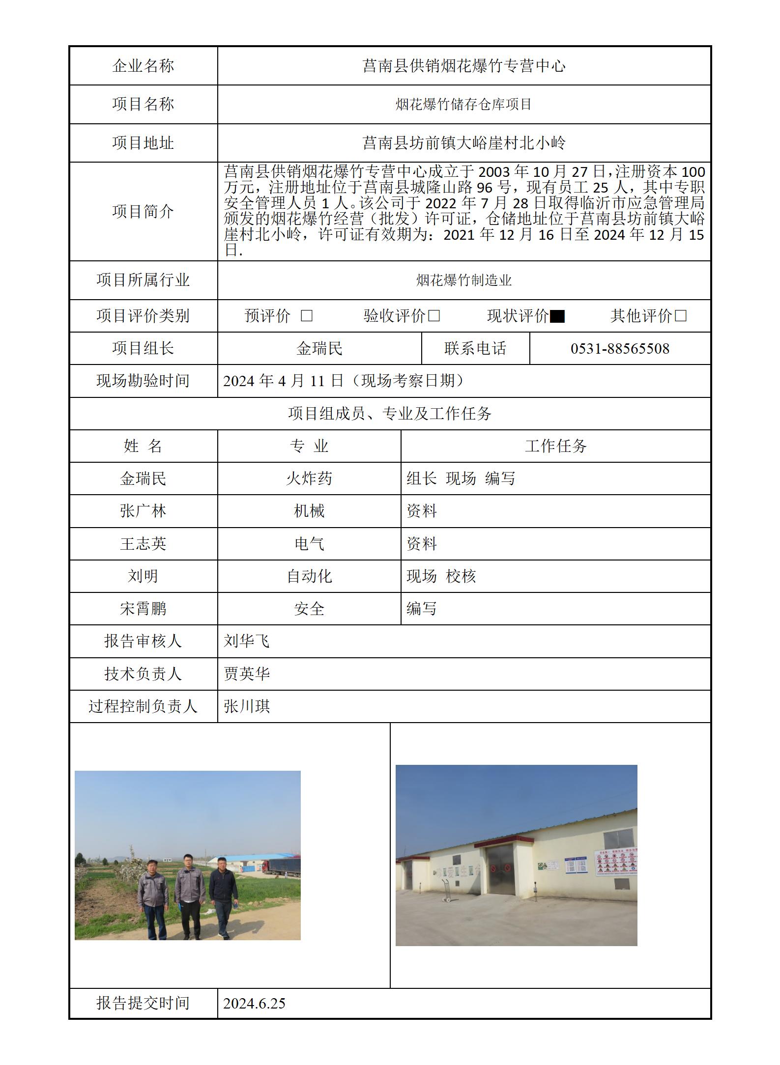 莒南县供销烟花爆竹专营中心安全评价报告信息公开