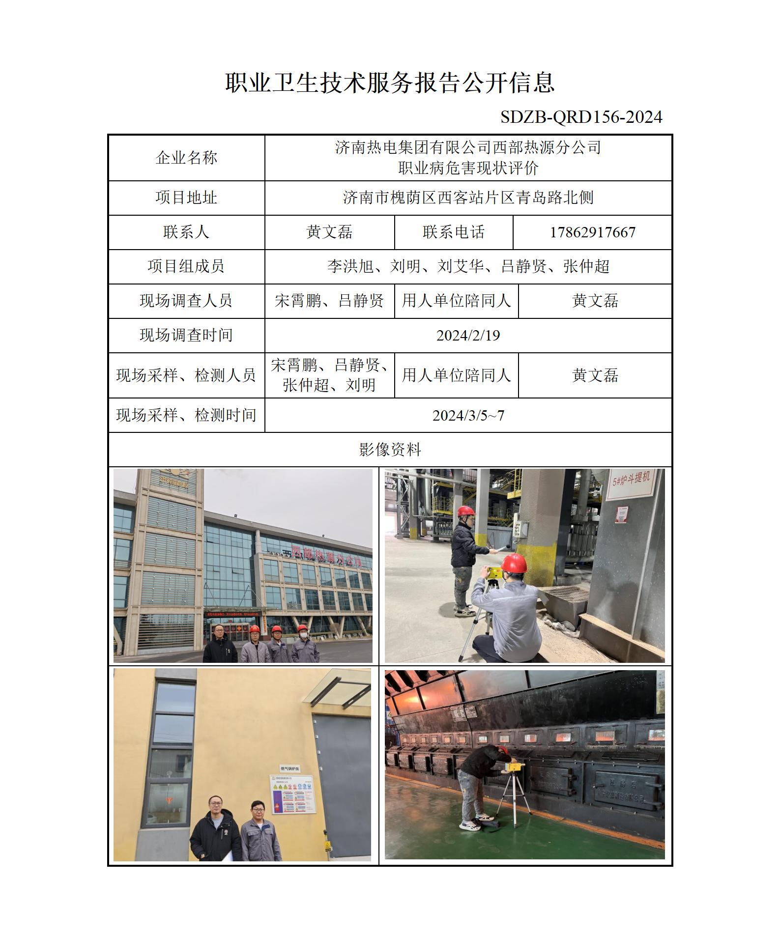 ZBZY24-XP-003济南热电集团有限公司西部热源分公司职业病危害现状评价信息公开