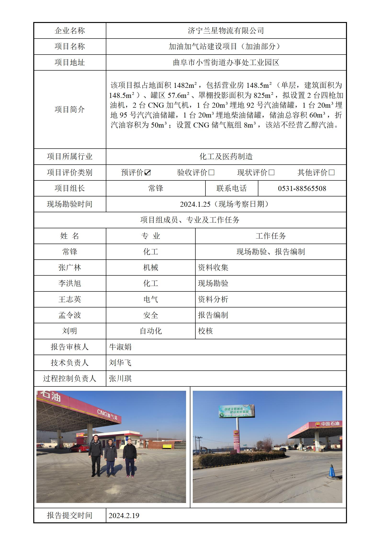 济宁兰星物流有限公司安全评价报告信息公开