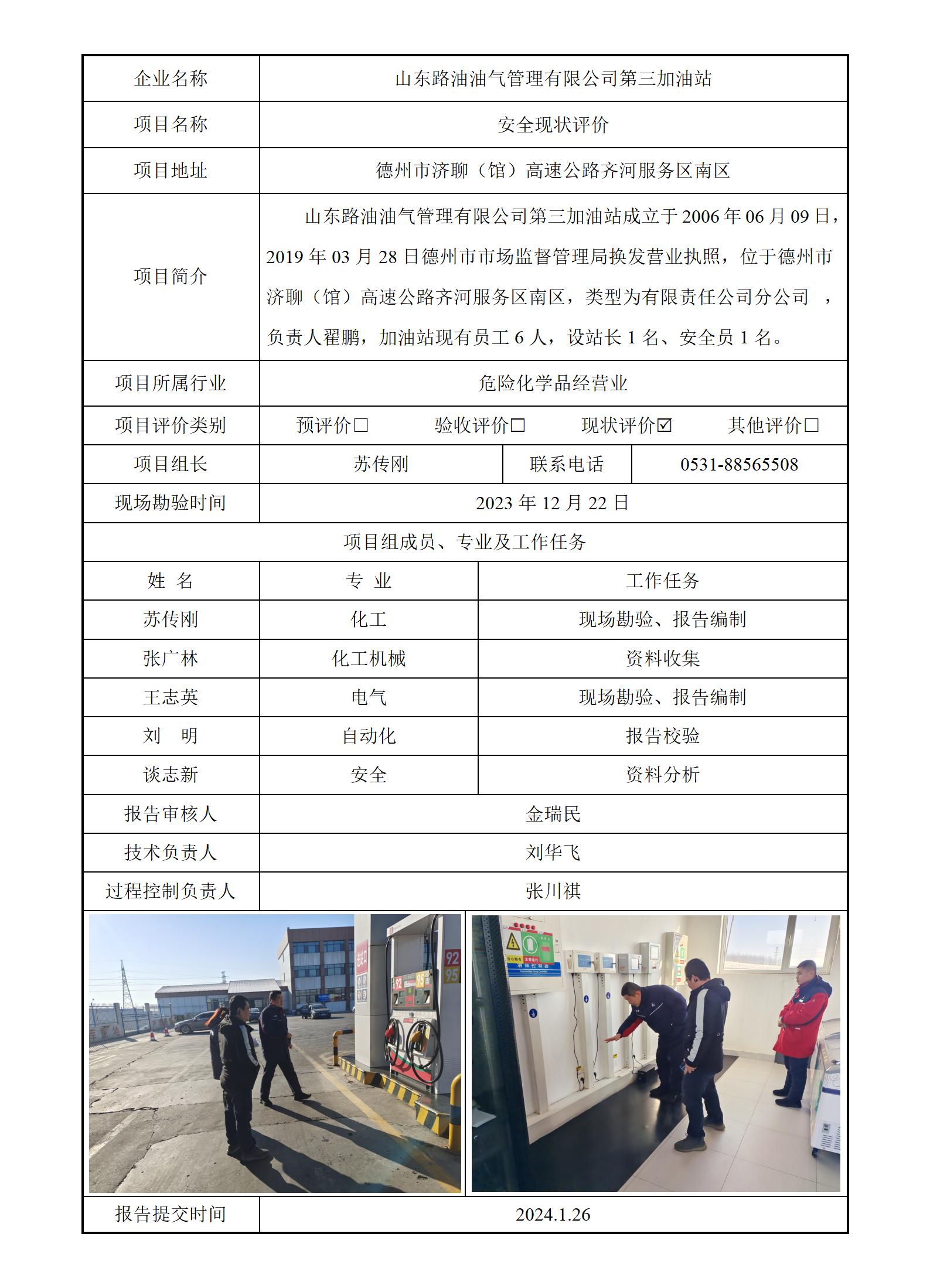 山东路油油气管理有限公司第三加油站安全评价报告信息公开