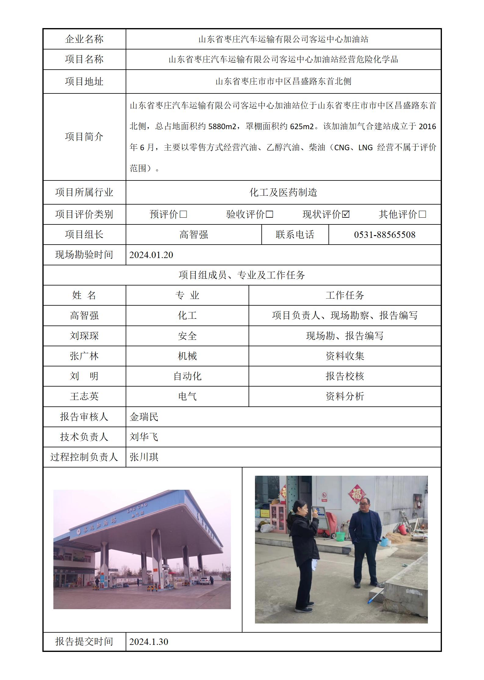 山东省枣庄汽车运输有限公司客运中心加油站安全评价报告信息公开