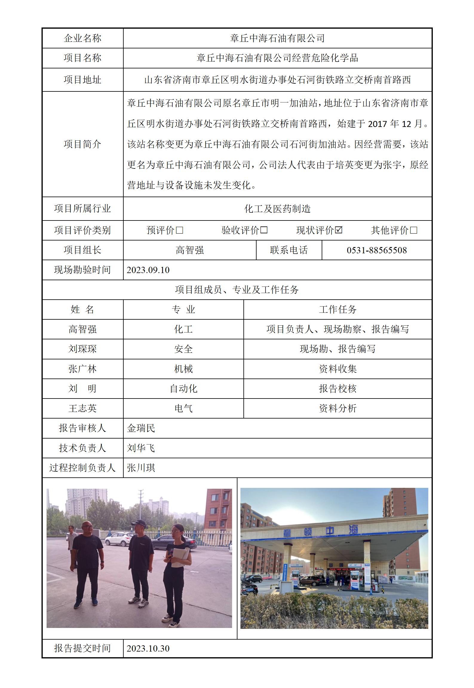 章丘中海石油有限公司安全评价报告信息公开