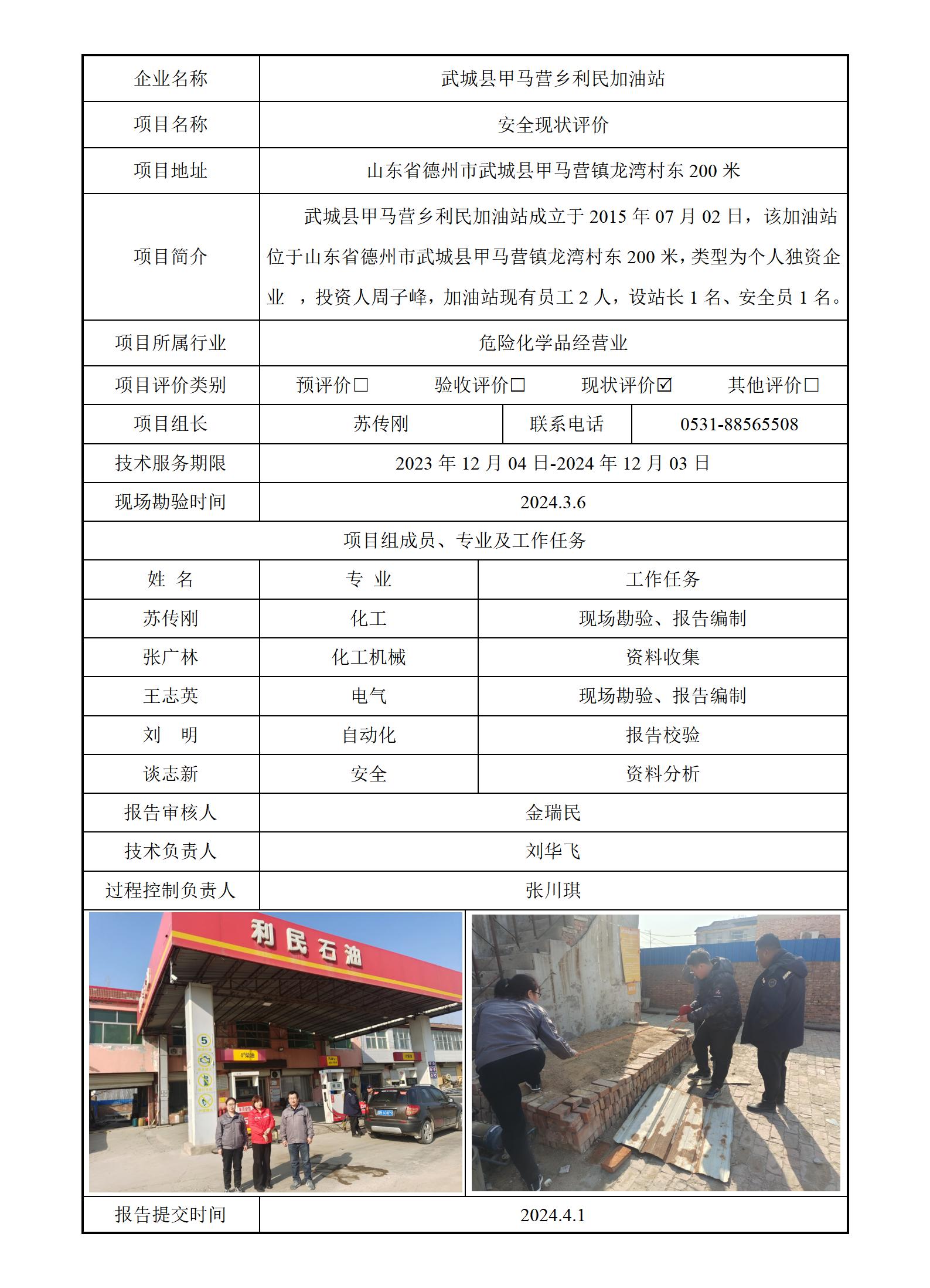 武城县甲马营乡利民加油站安全评价报告信息公开
