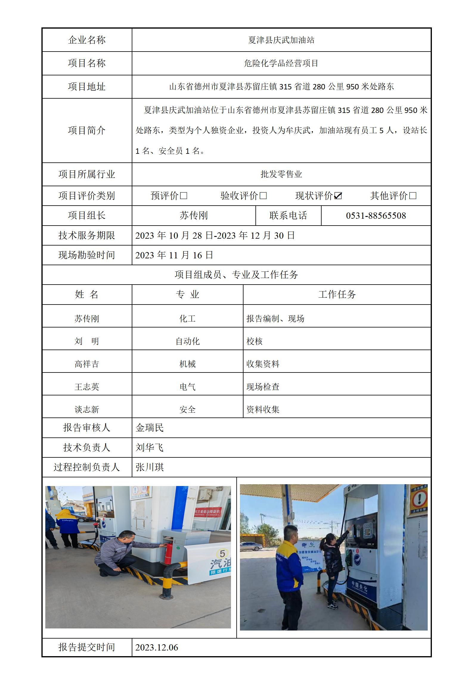 夏津县庆武加油站安全评价报告信息公开