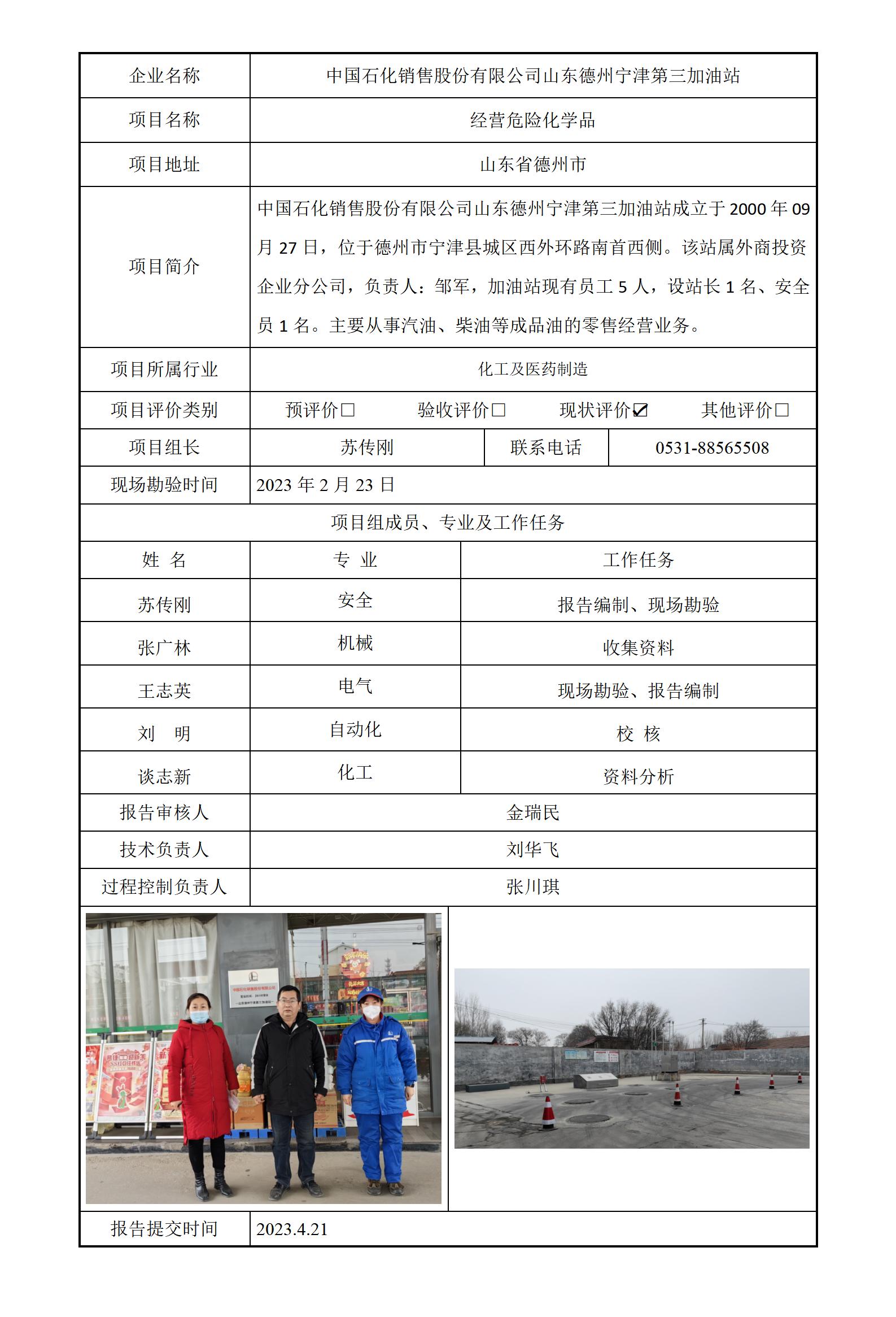 中国石化销售股份有限公司山东德州宁津第三加油站