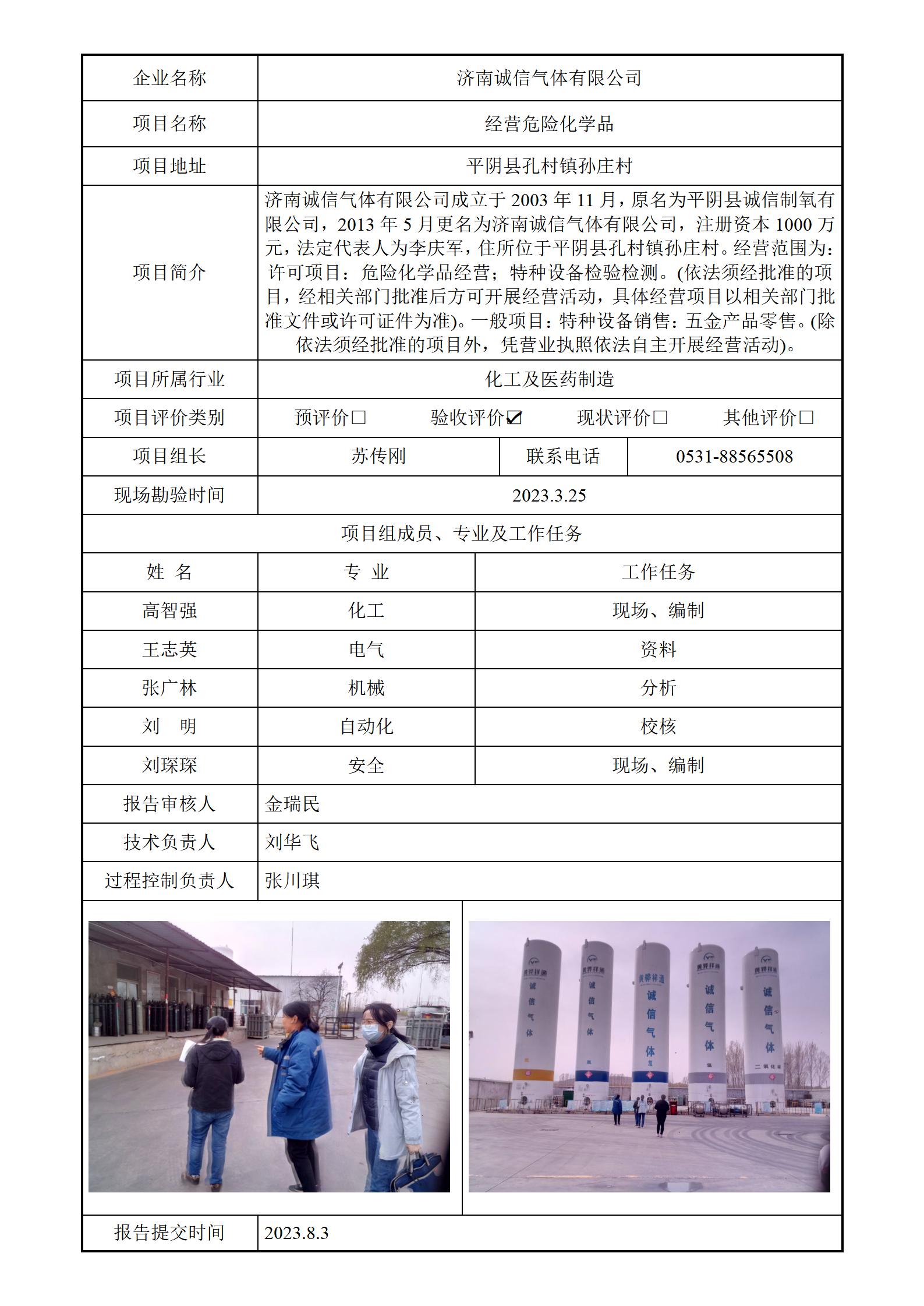 济南诚信气体有限公司 安全评价报告信息公开