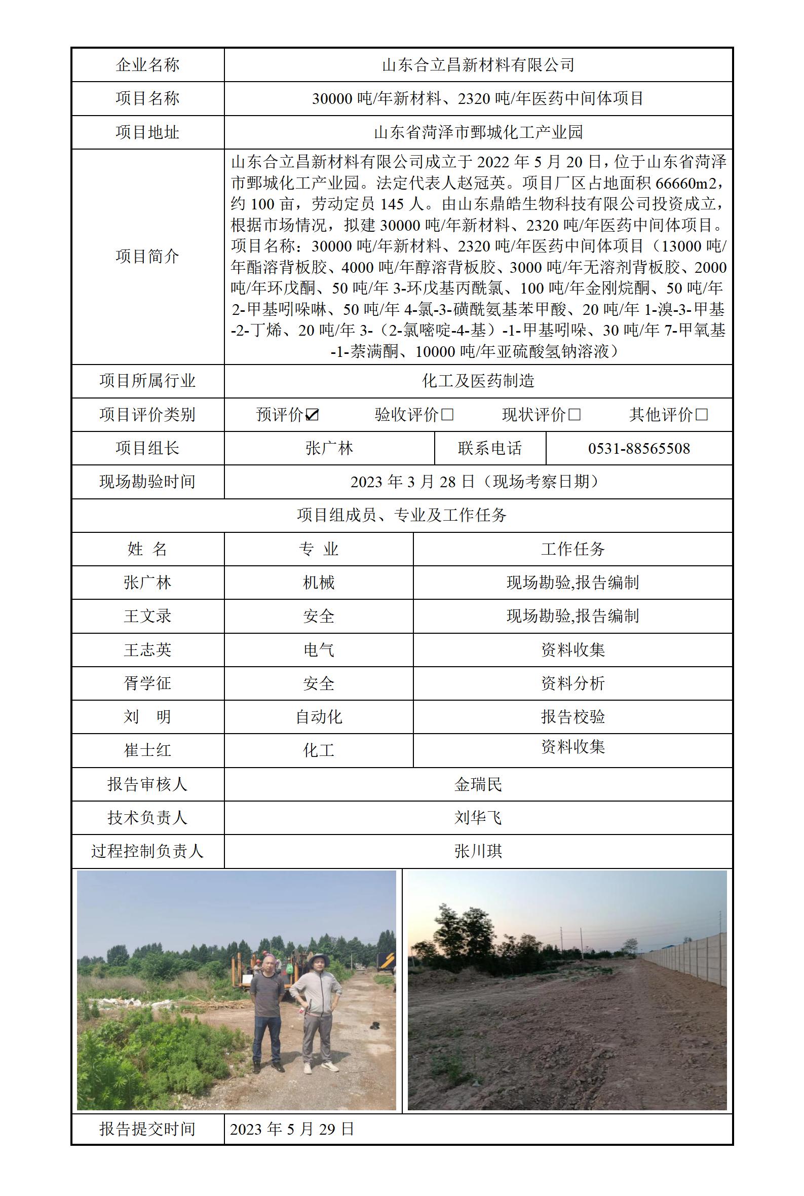 山东合立昌新材料有限公司安全评价报告信息公开
