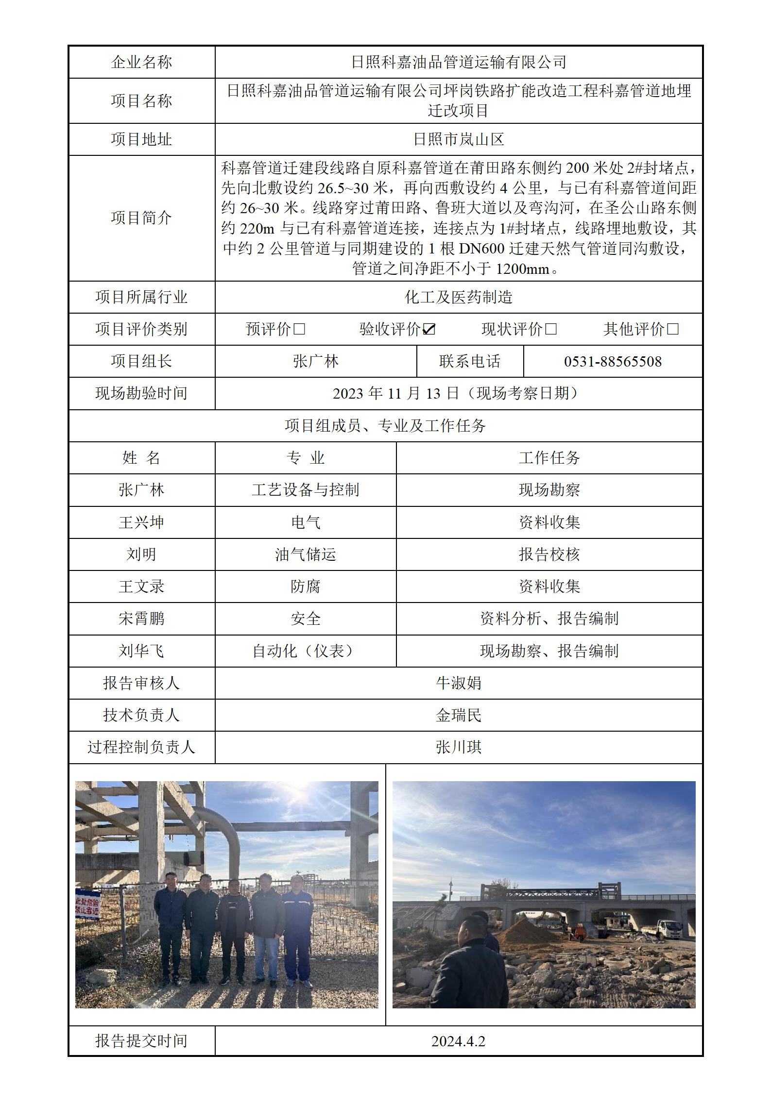 日照科嘉油品管道运输有限公司安全评价报告信息公开