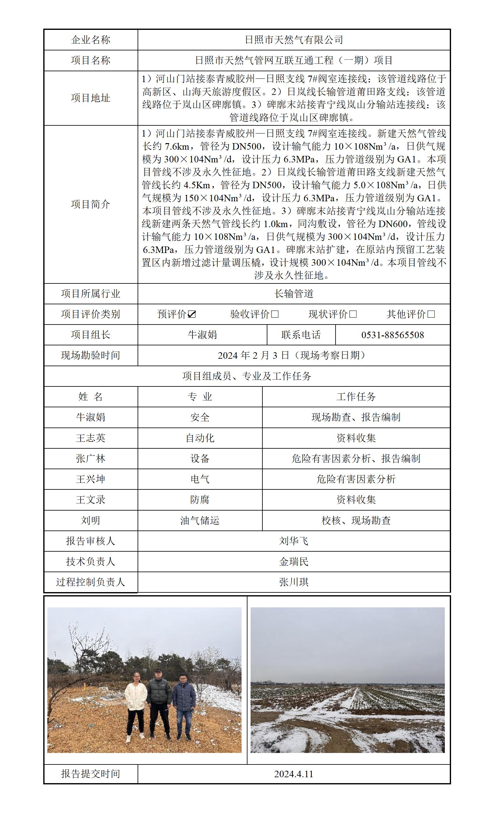 日照市天然气有限公司安全评价报告信息公开