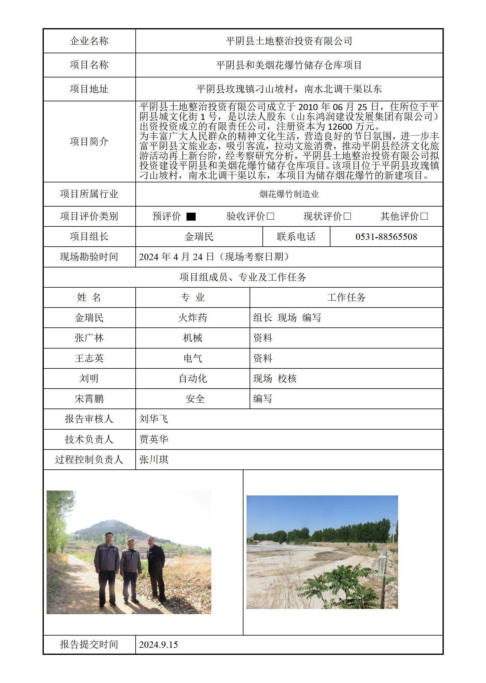 平阴县土地整治投资有限公司 安全评价报告信息公开