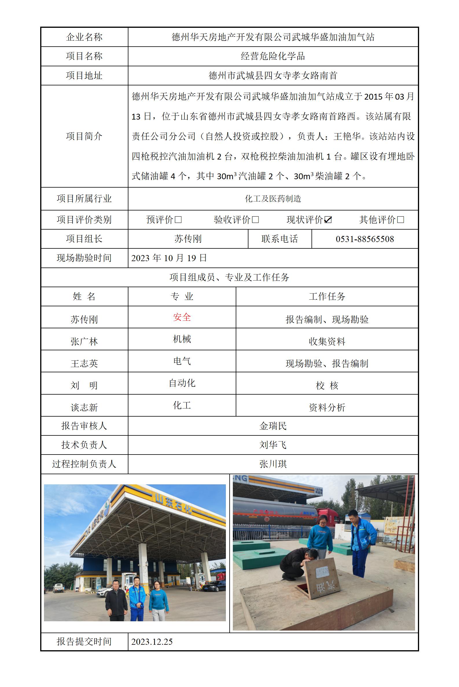 德州华天房地产开发有限公司武城华盛加油加气站安全评价报告信息公开
