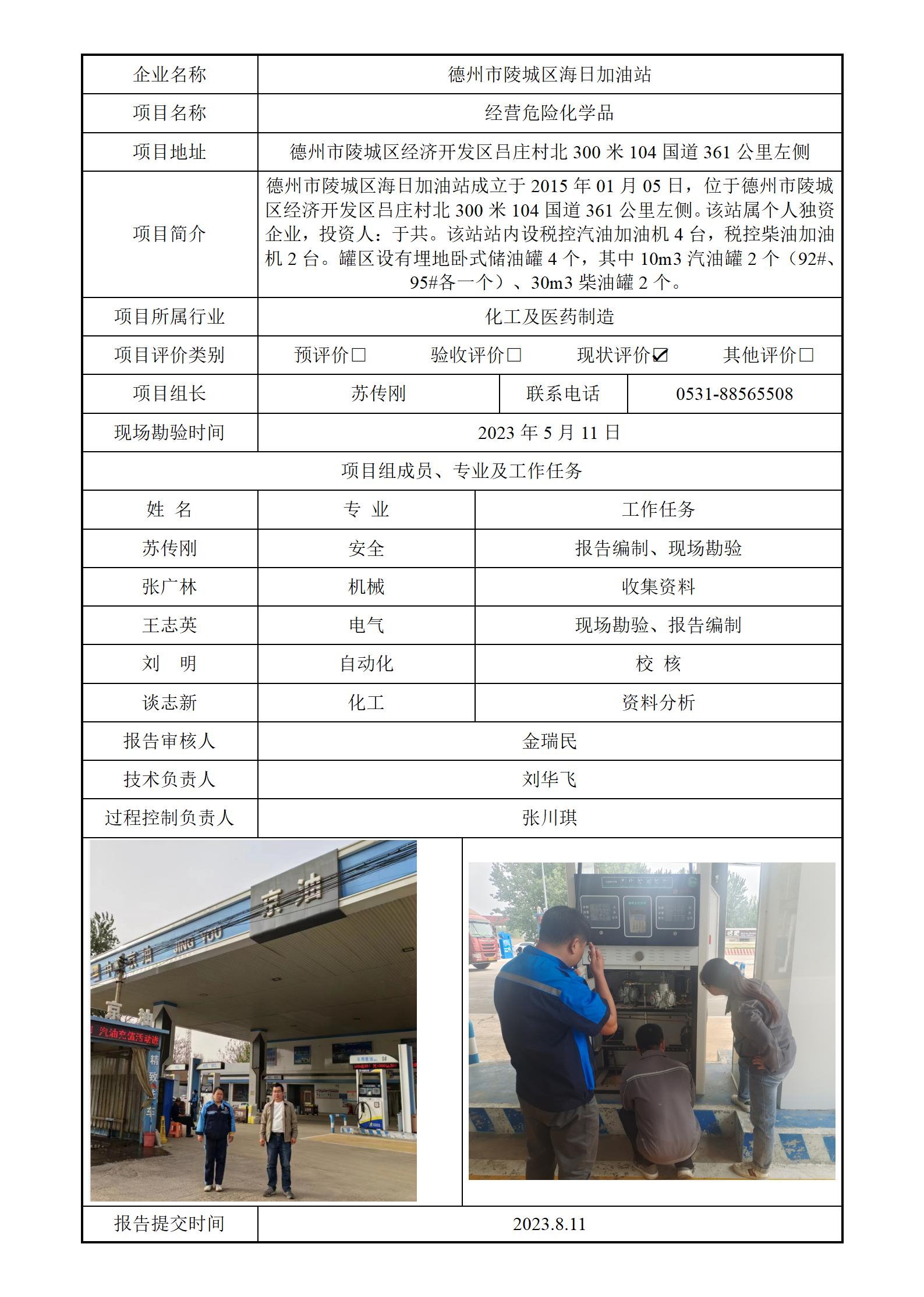 德州市陵城区海日加油站安全评价报告信息公开