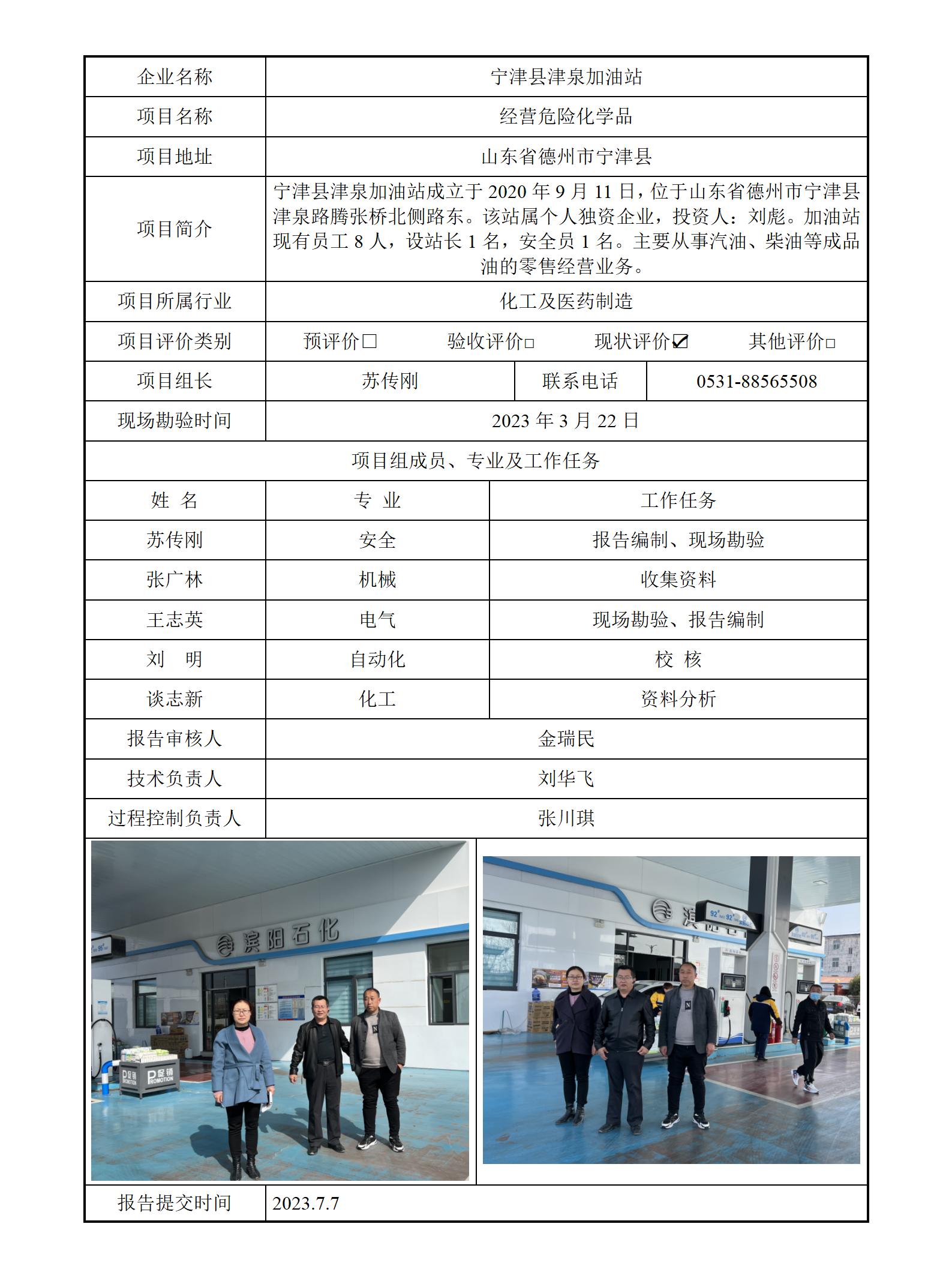 宁津县津泉加油站安全评价报告信息公开