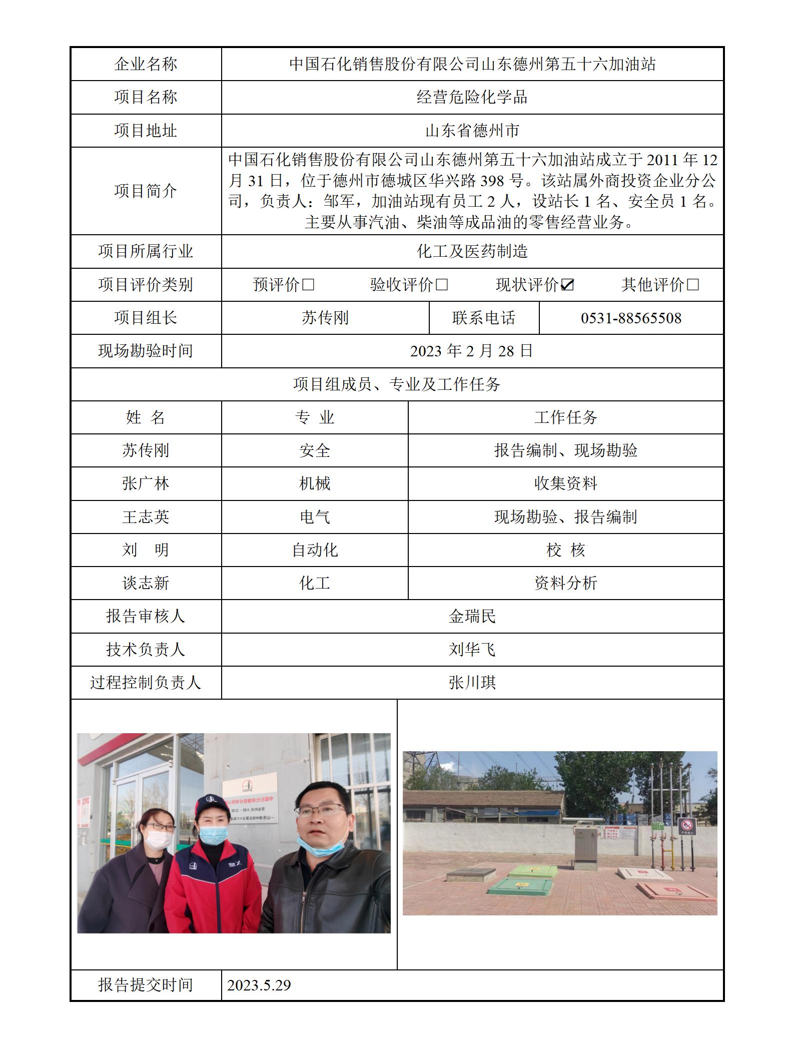中国石化销售股份有限公司山东德州第五十六加油站安全评价报告信息公开