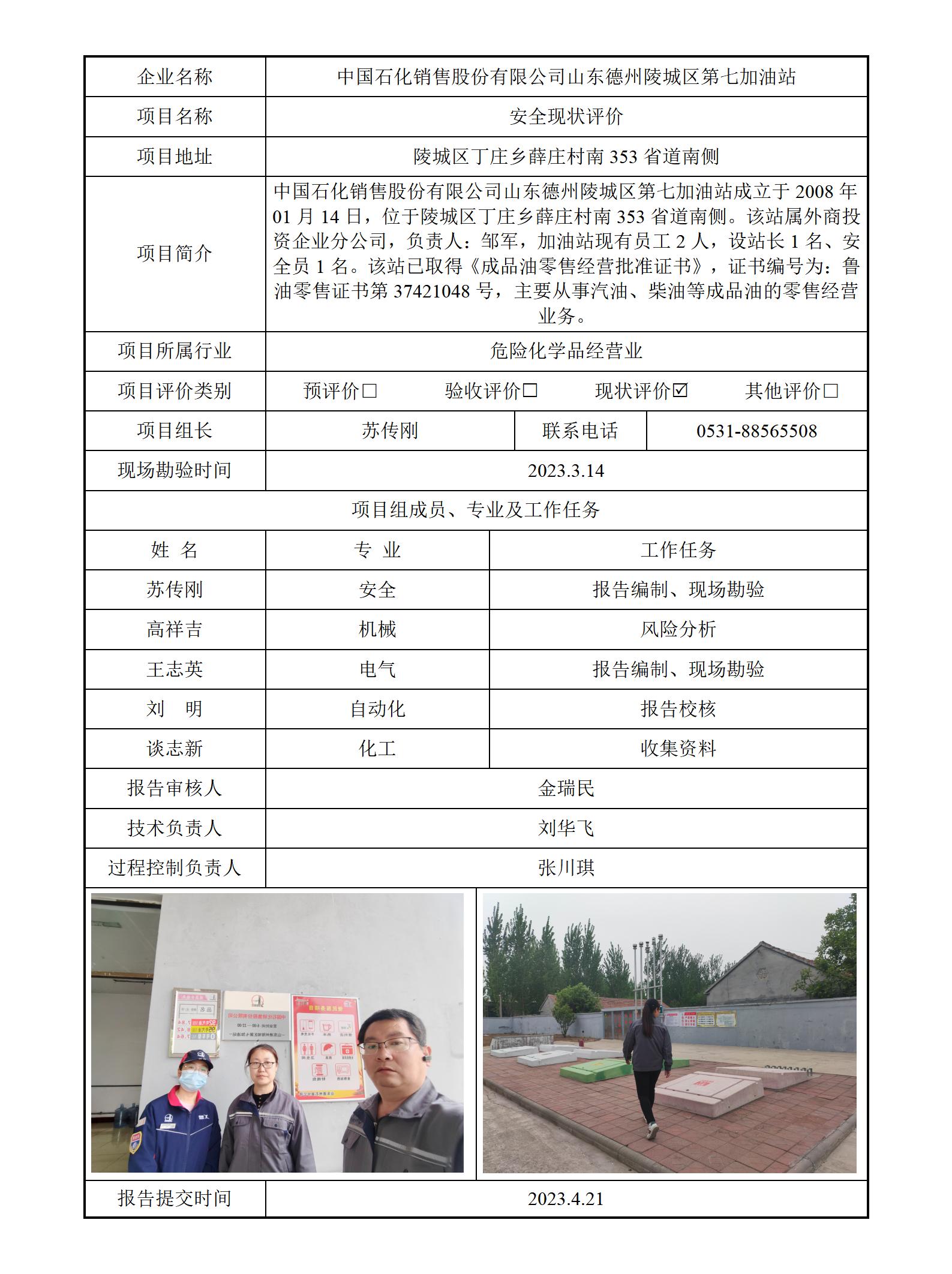 中国石化销售股份有限公司山东德州陵城区第七加油站安全评价报告信息公开