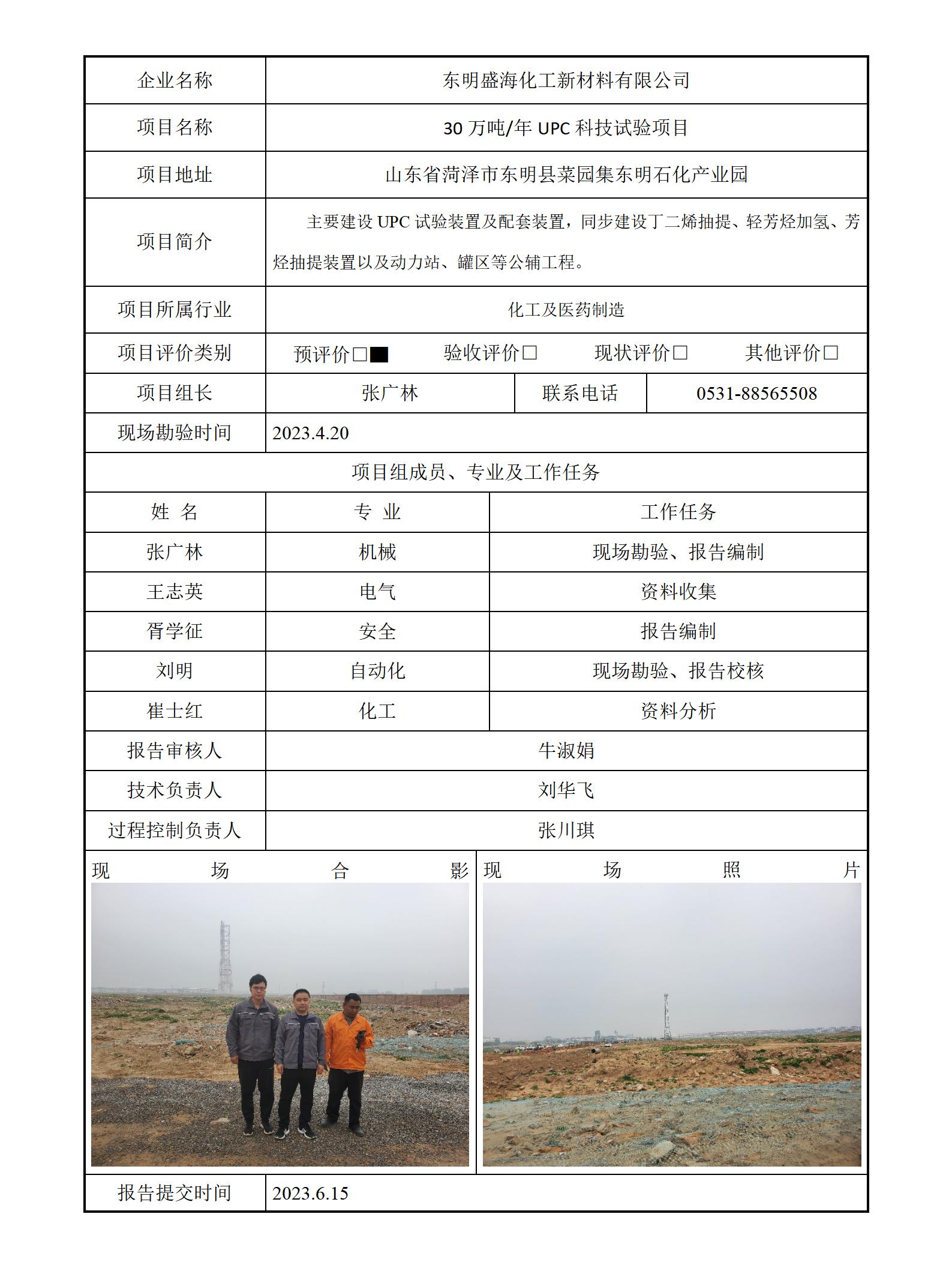 东明盛海化工新材料有限公司 30万吨/年UPC科技试验项目安全评价报告信息公开