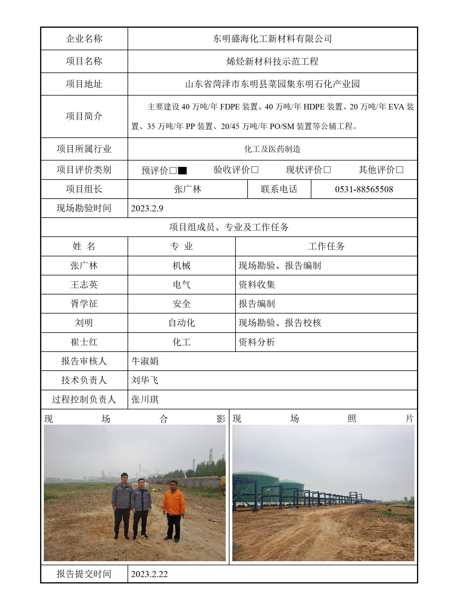 东明盛海化工新材料有限公司 烯烃新材科技示范工程安全评价报告信息公开