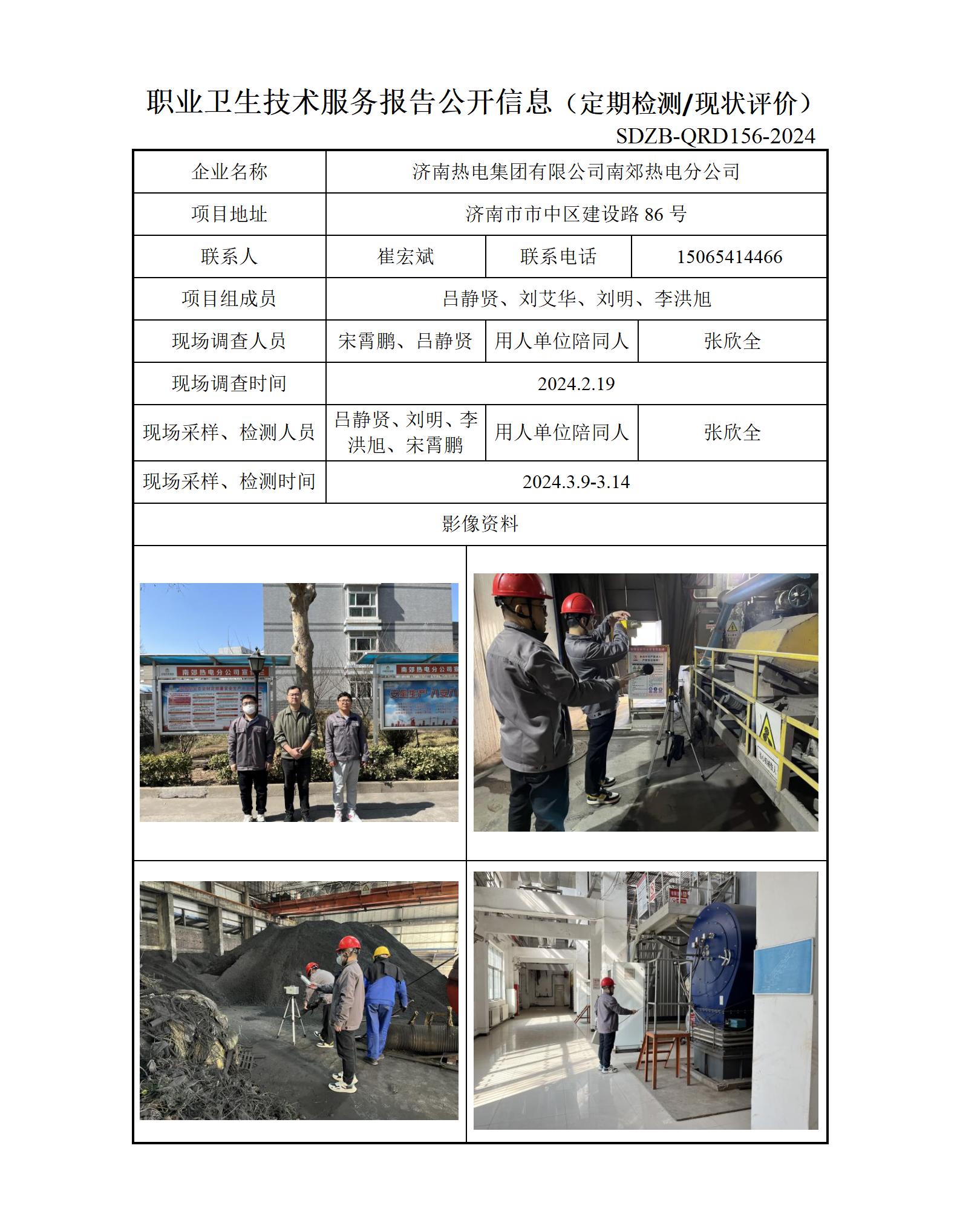 ZBZY24-XP-004济南热电集团有限公司南郊热电分公司职业卫生技术服务报告公开信息