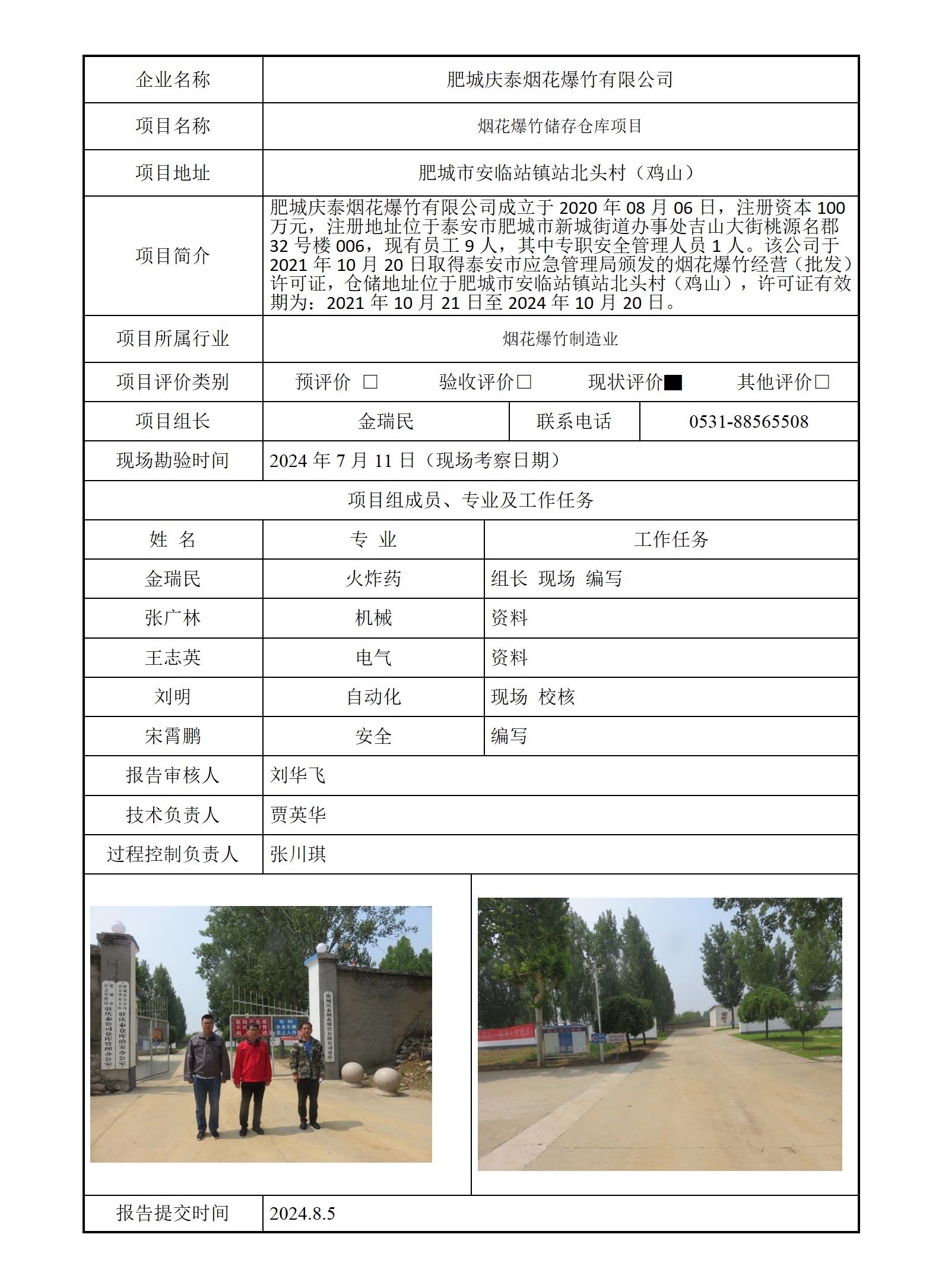 肥城庆泰烟花爆竹有限公司安全评价报告信息公开