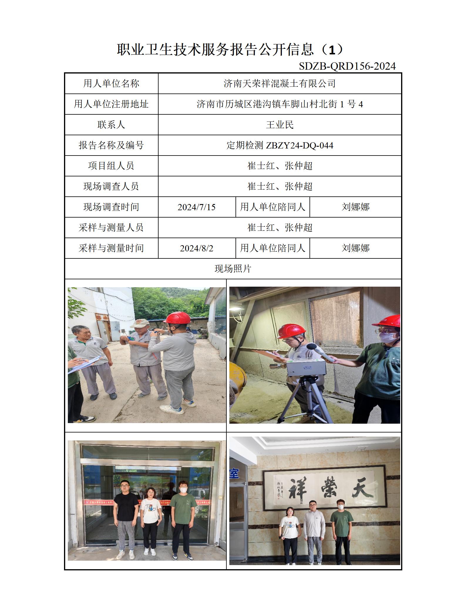 ZBZY24-DQ-045济南天荣祥混凝土有限公司定期检测 信息公开