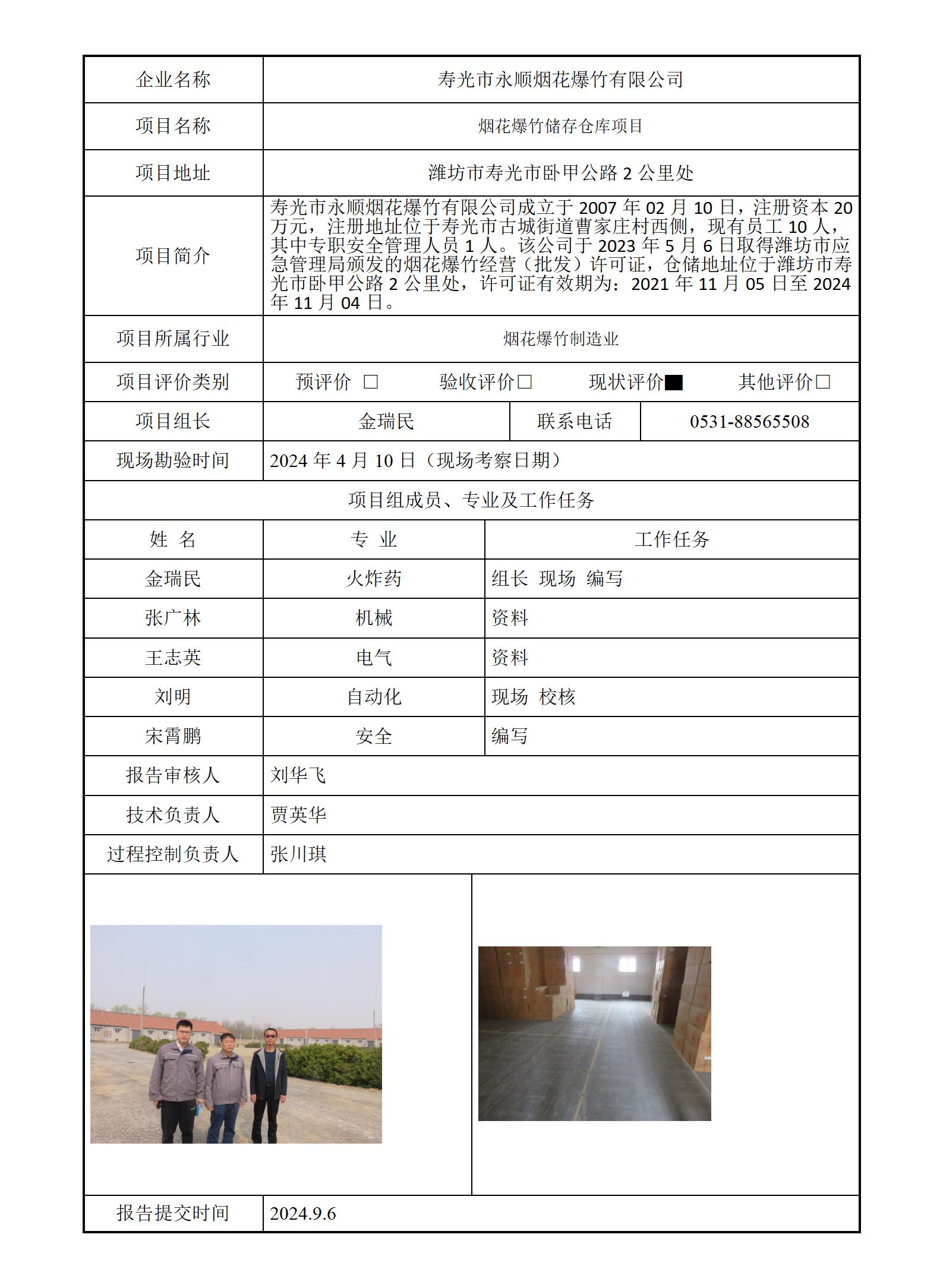 寿光市永顺烟花爆竹有限公司安全评价报告信息公开