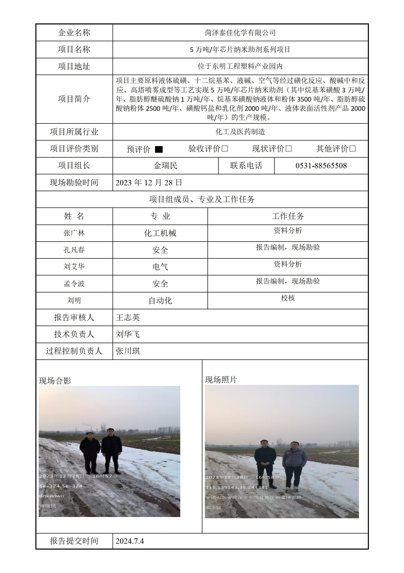 菏泽泰佳化学有限公司安全评价报告信息公开
