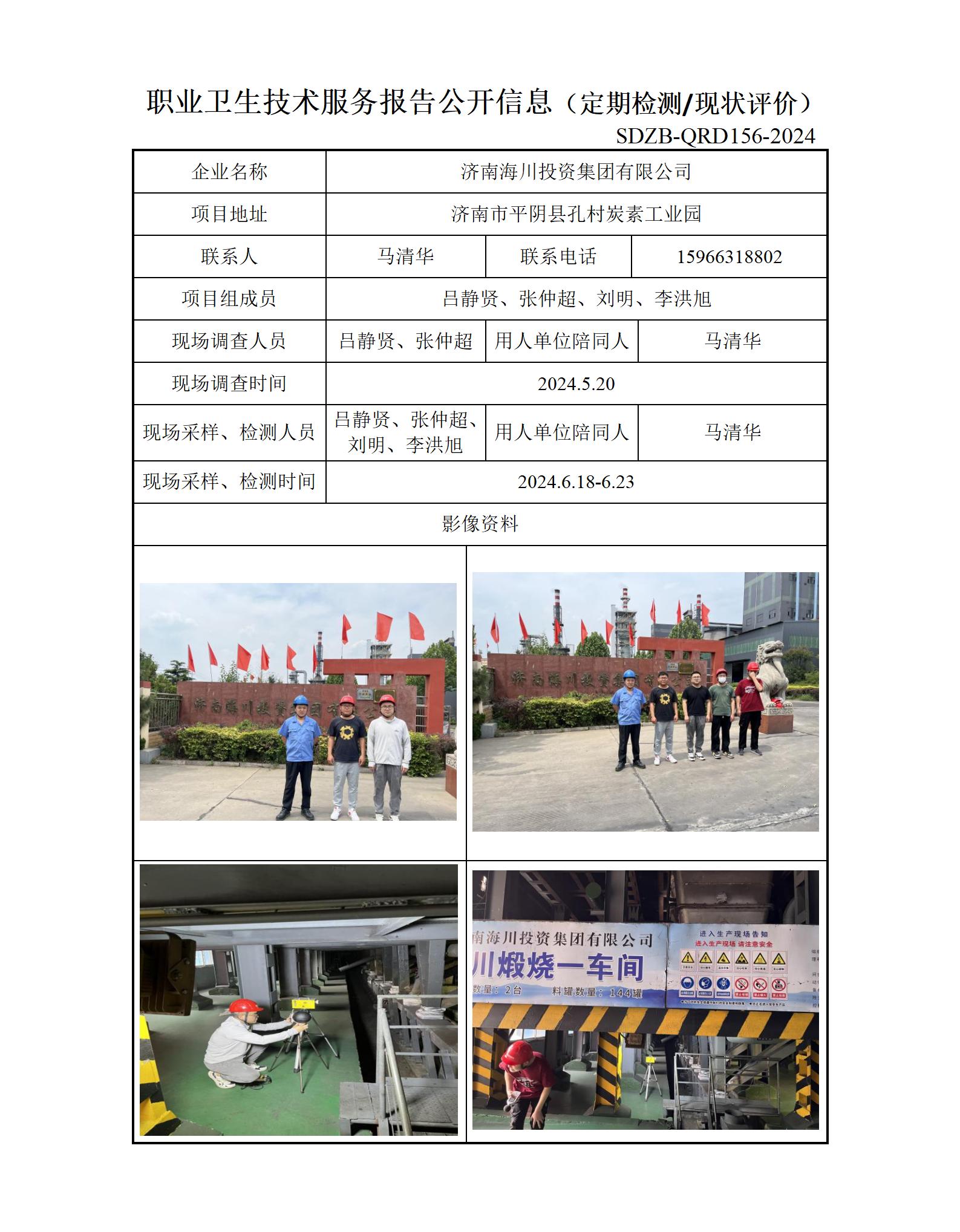 ZBZY24-XP-007济南海川投资集团有限公司职业卫生技术服务报告公开信息