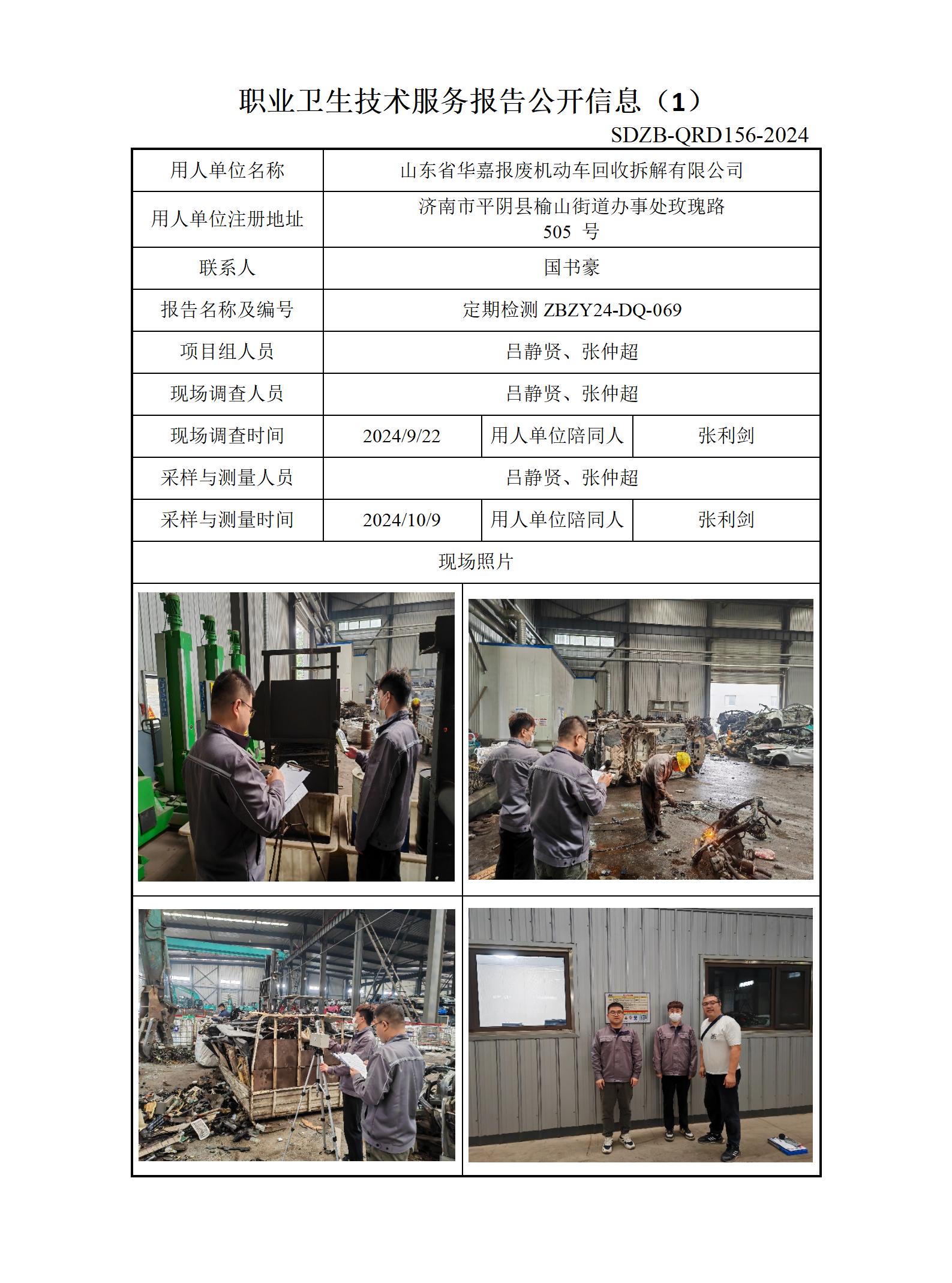 ZBZY24-DQ-069山东省华嘉报废机动车回收拆解有限公司定期检测 信息公开