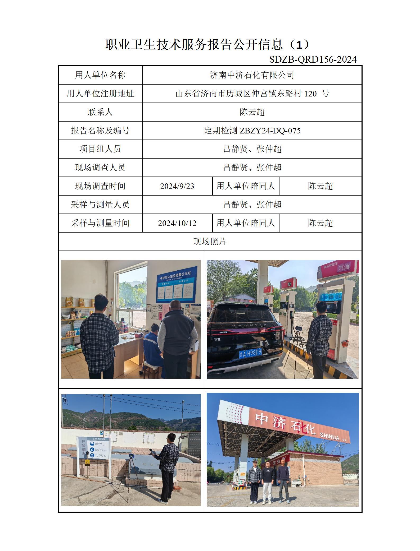 ZBZY24-DQ-075济南中济石化有限公司定期检测 信息公开