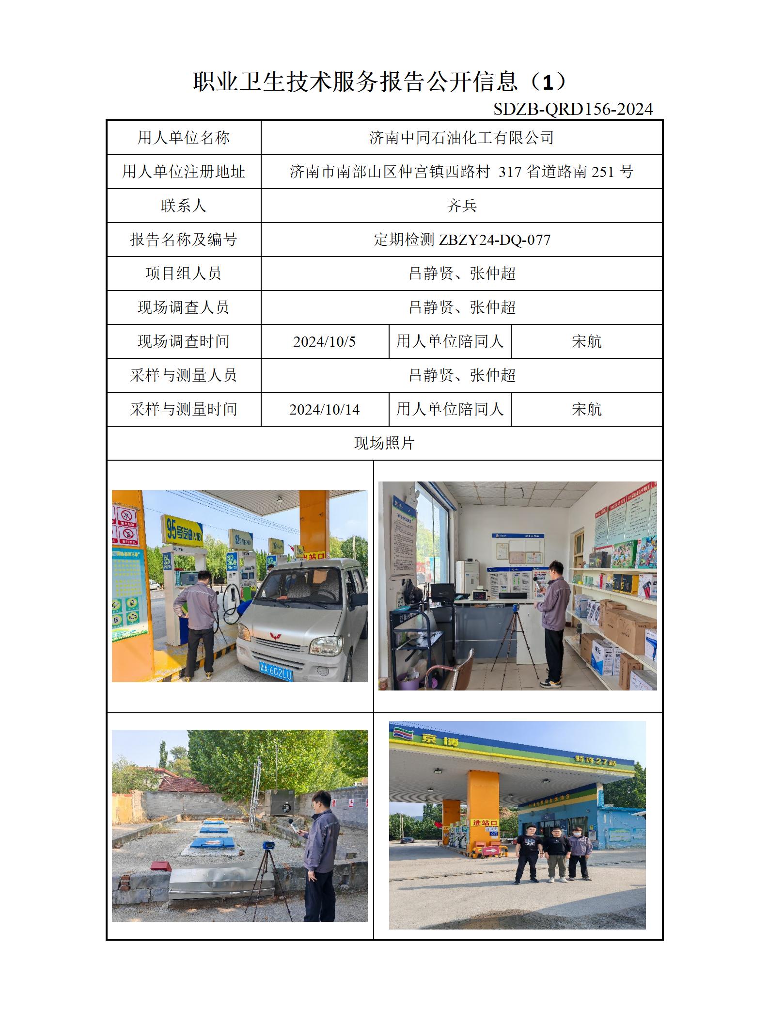 ZBZY24-DQ-077济南中同石油化工有限公司定期检测 信息公开