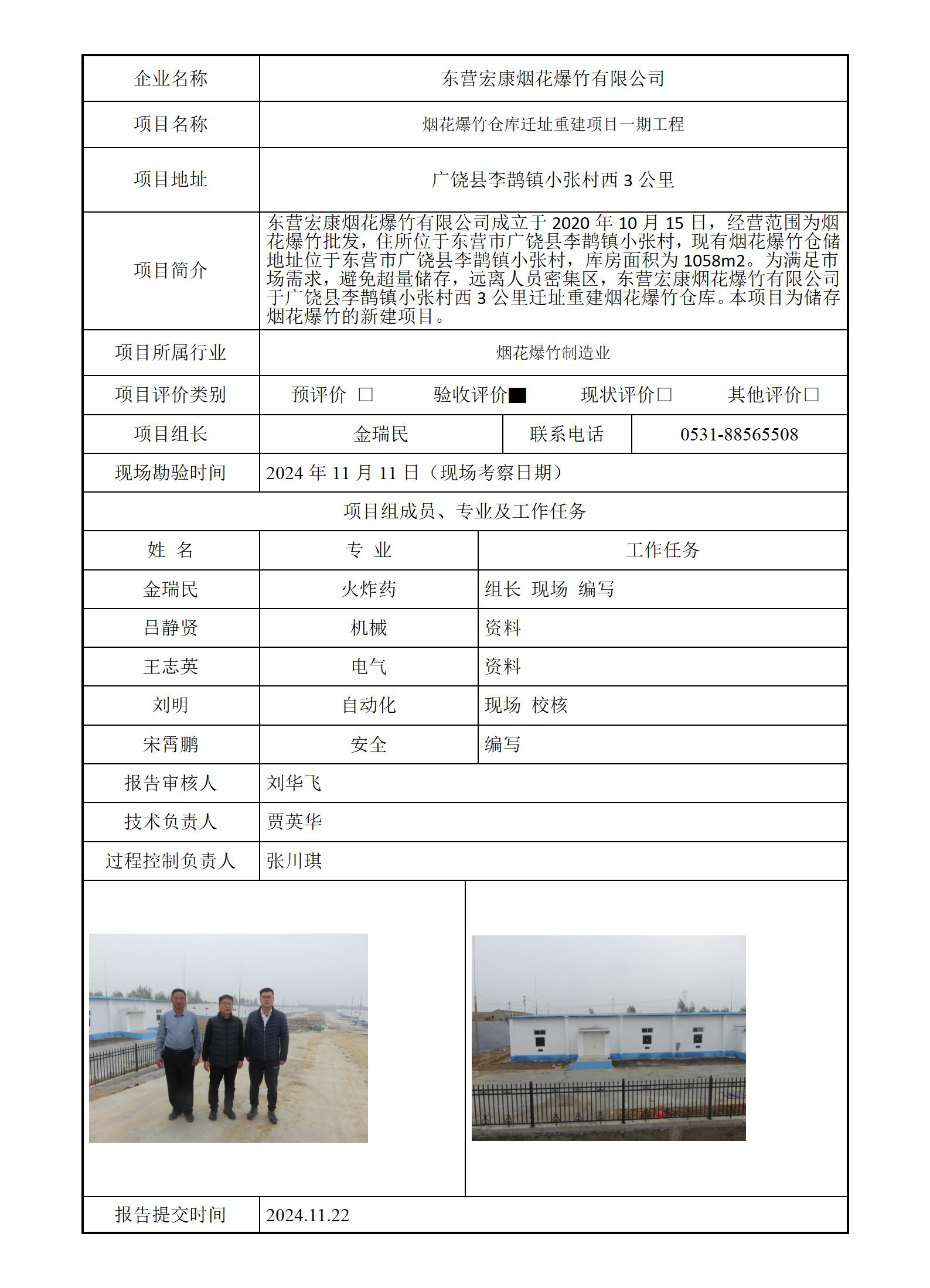 东营宏康烟花爆竹有限公司 安全评价报告信息公开