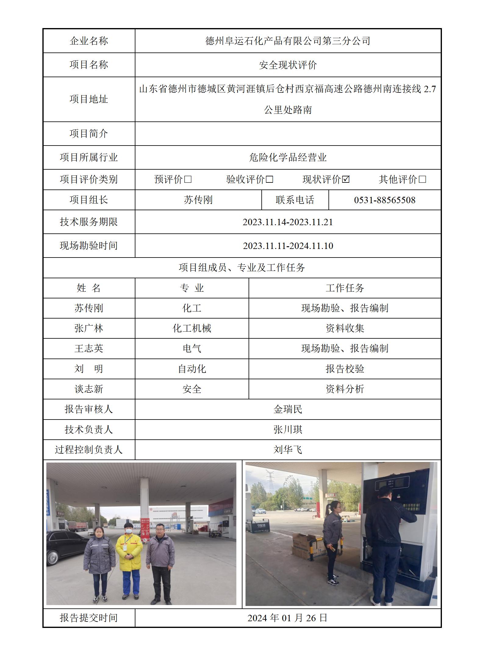 德州阜运石化产品有限公司第三分公司安全评价报告信息公开