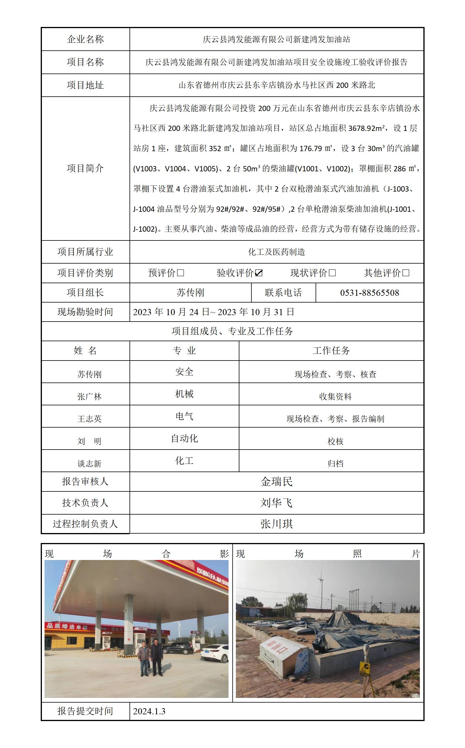 庆云县鸿发能源有限公司新建鸿发加油站项目安全评价报告信息公开