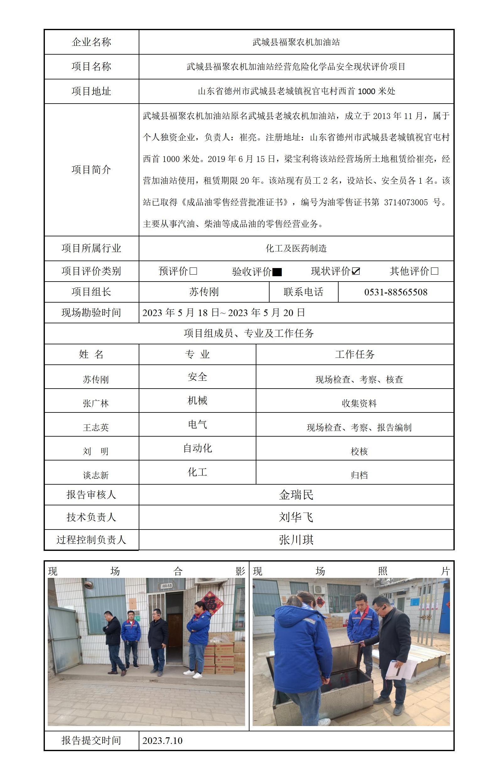 武城县福聚农机加油站安全评价报告信息公开