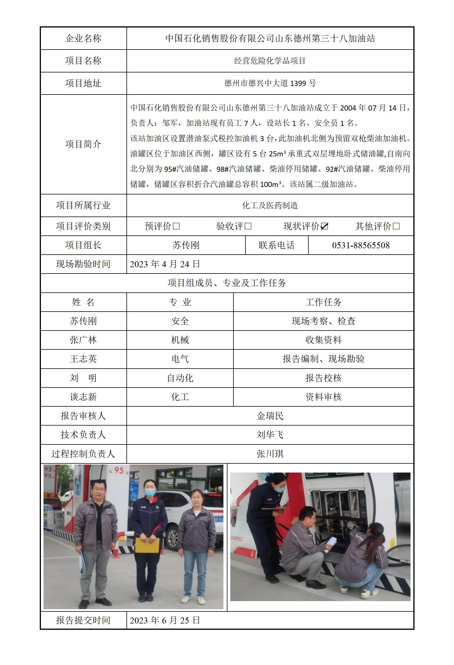 中石化山东德州第三十八加油站安全评价报告信息公开