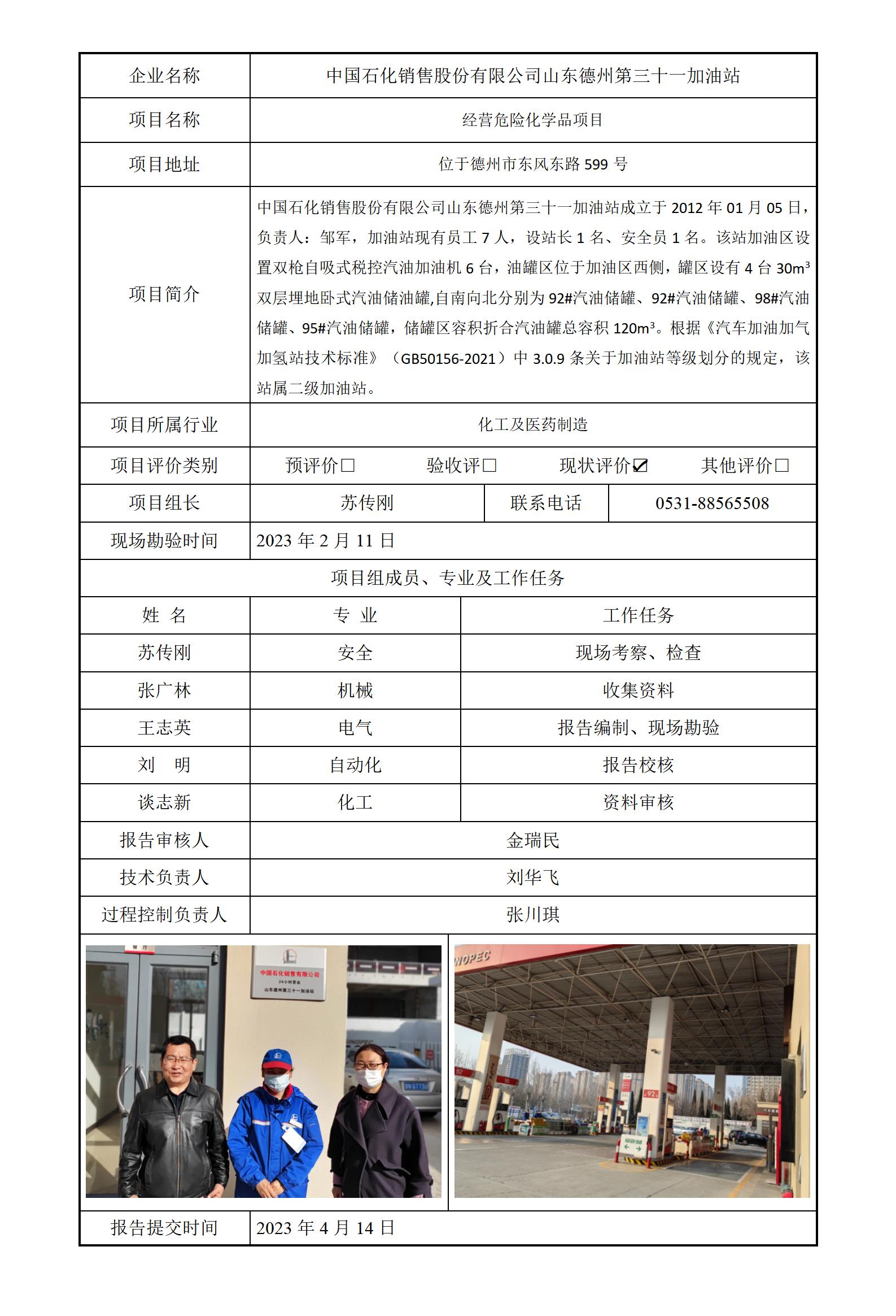 中石化山东德州第三十一加油站安全评价报告信息公开