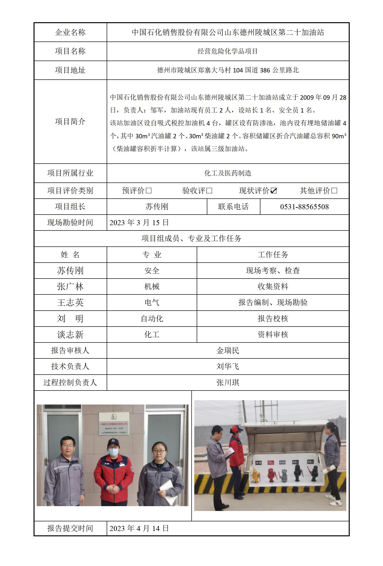 中石化山东德州陵城区第二十加油站安全评价报告信息公开