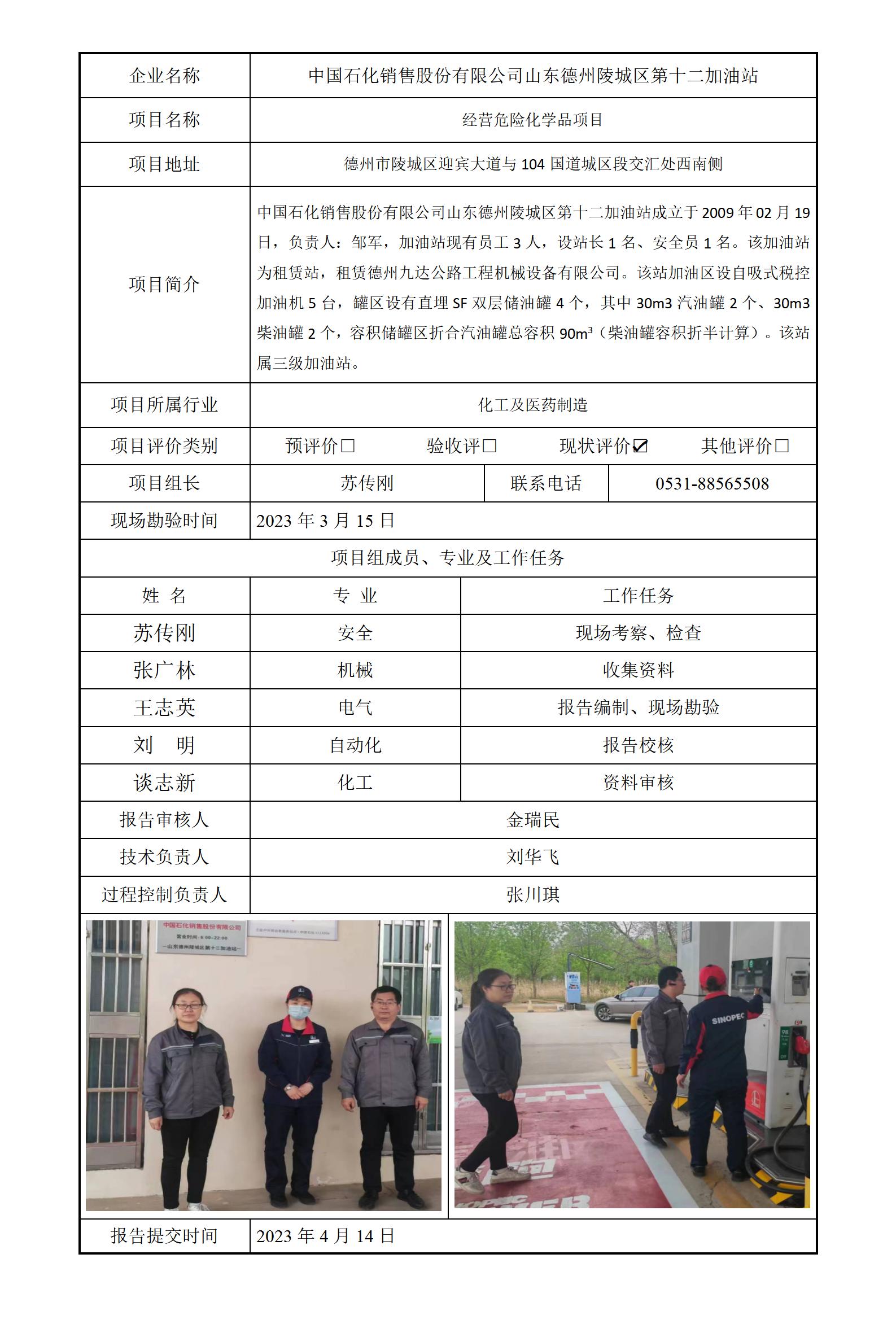 中石化山东德州陵城区第十二加油站安全评价报告信息公开
