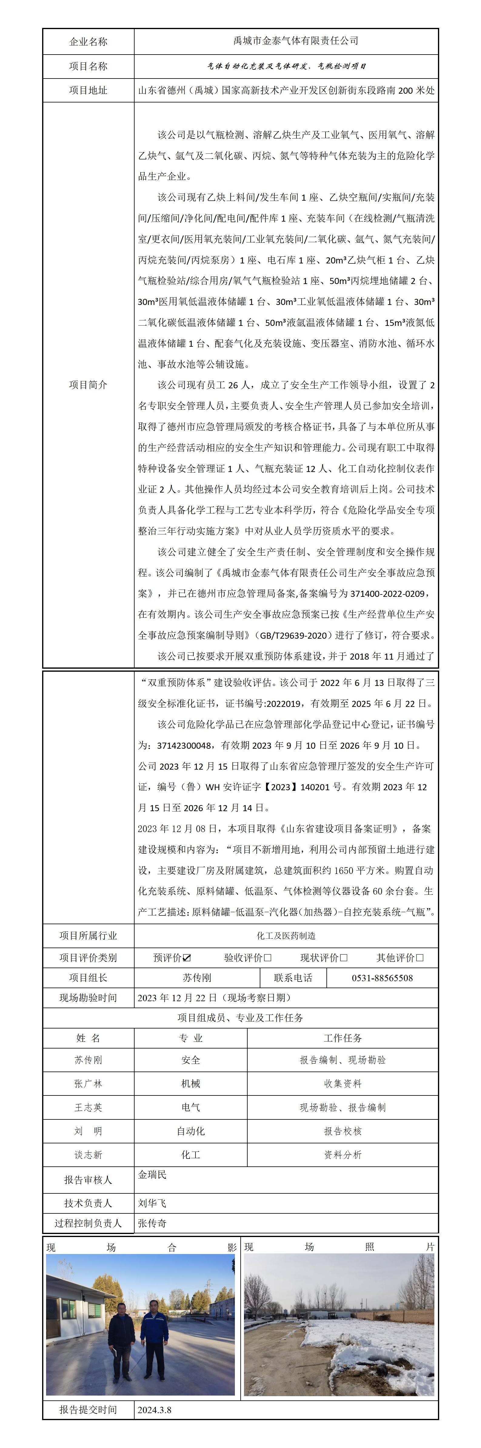 禹城市金泰气体有限责任公司安全评价报告信息公开